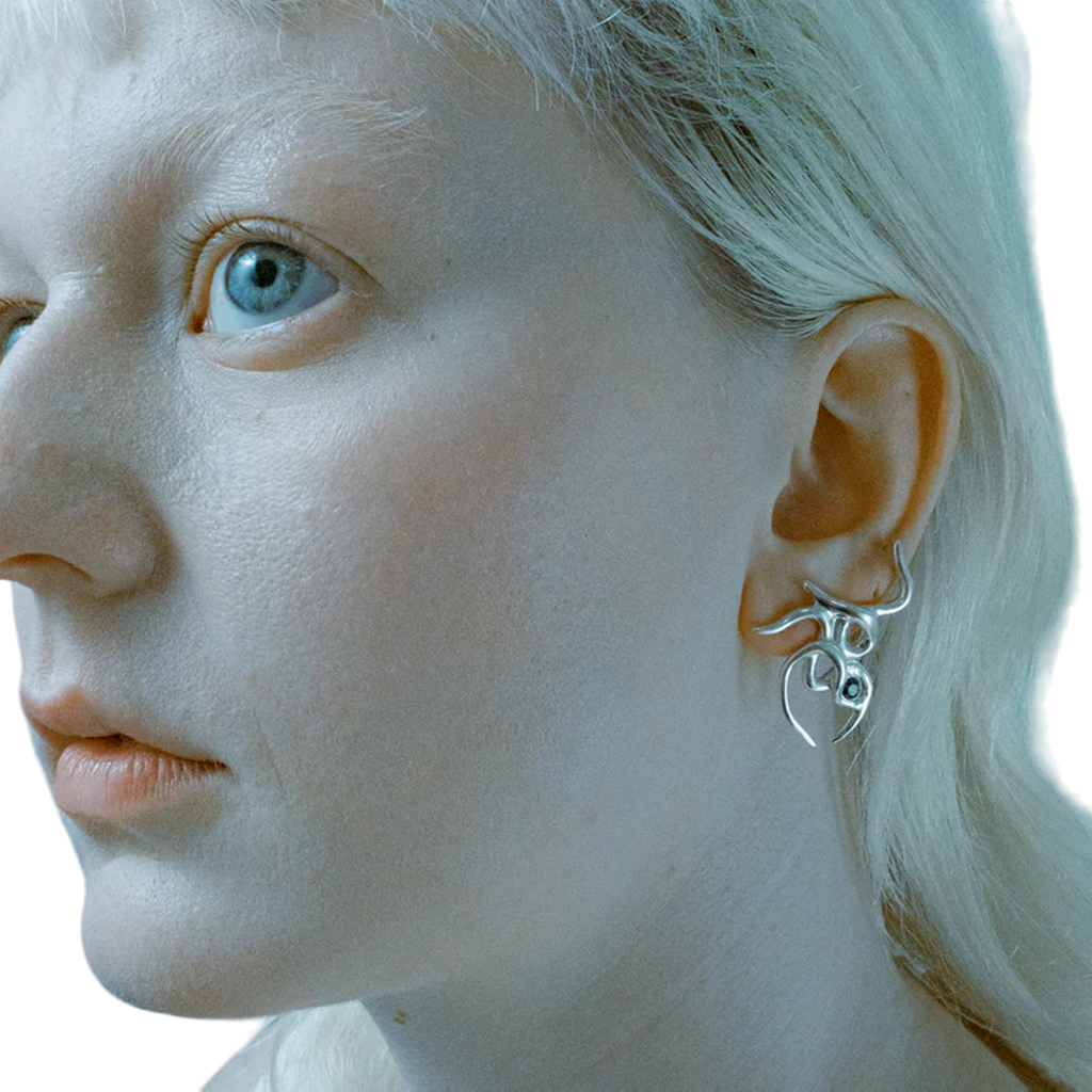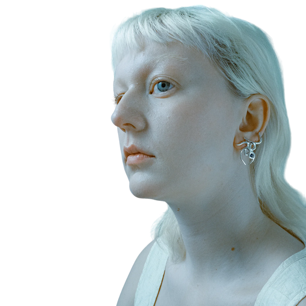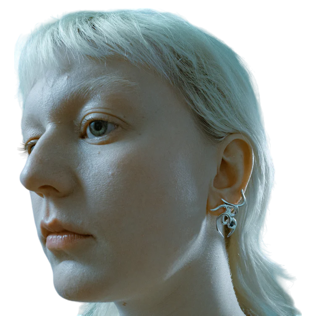 Rosie Grace Ward is a London-based multidisciplinary artist and jeweller, known for translating her sculptures into wearable art. Working primarily with cast pewter, resin, and silver, she meticulously crafts each piece by hand in her studio. Her standout creation, the 'Worm Necklace,' is characterized by its individual snaking links, each embellished with a single grey pearl.