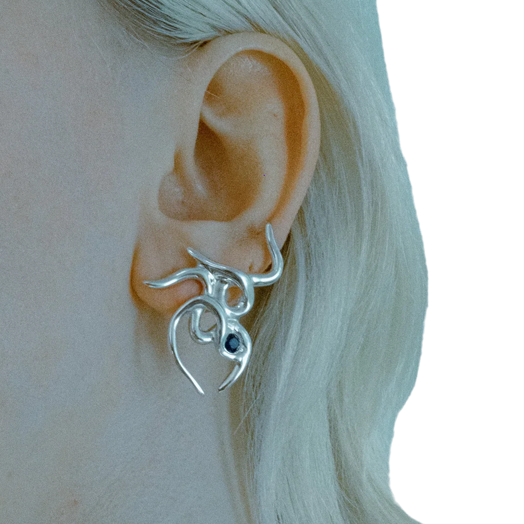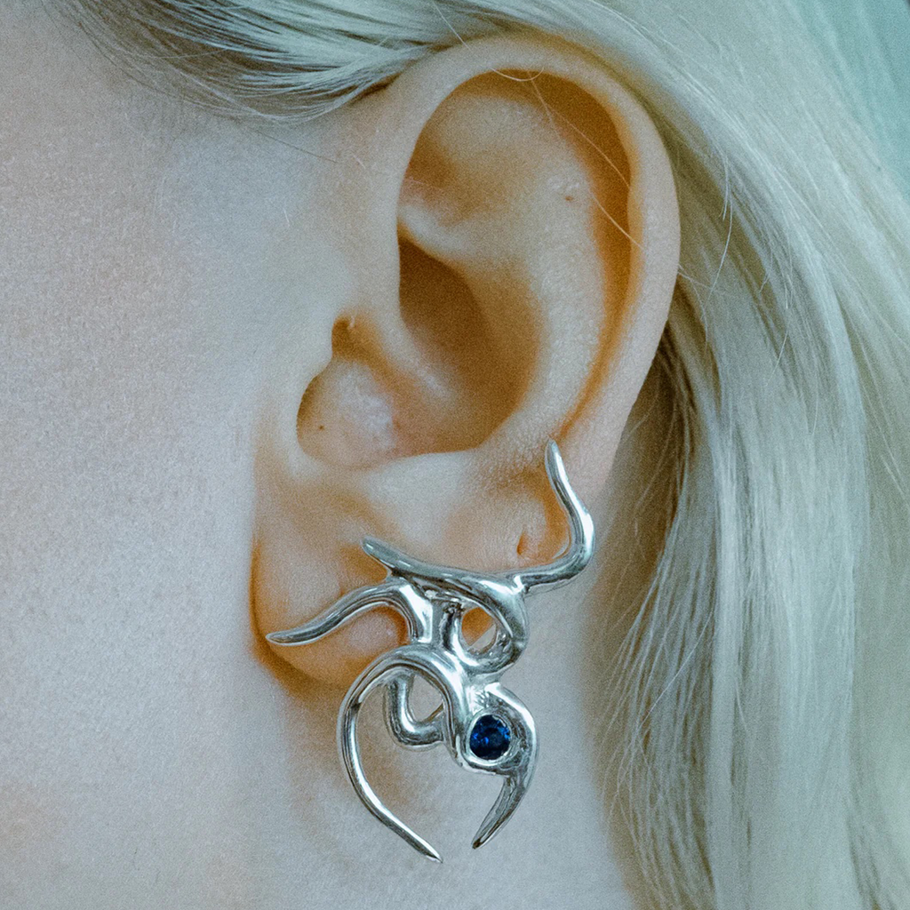 Single earring made from recycled sterling silver and set with a clear cubic zirconia.