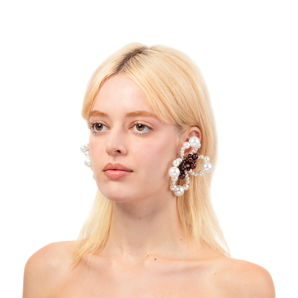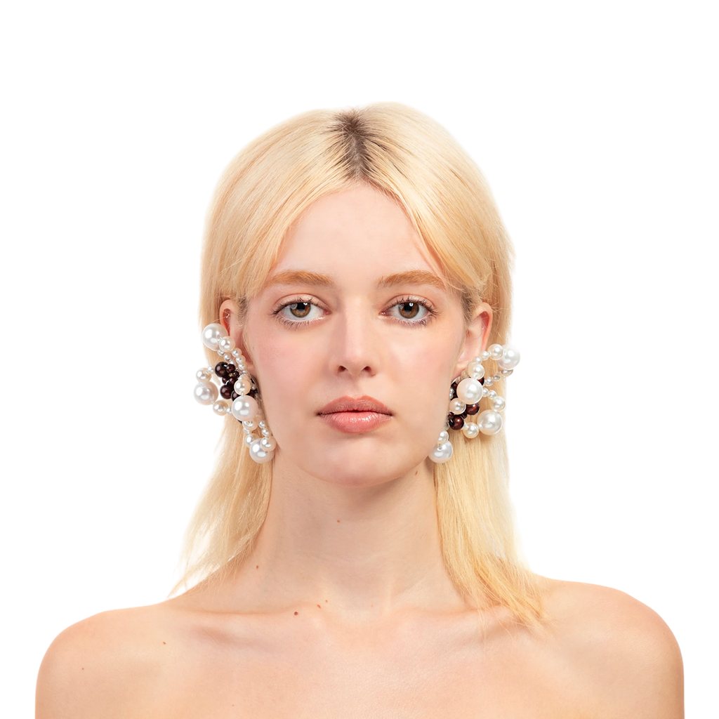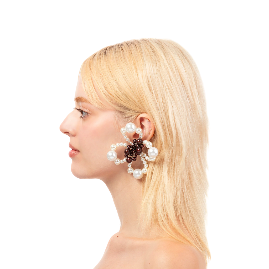 Crafted from 3D printed ABS resin, these earrings feature an ABS plastic perlated ball on top, complemented by a pink glazed brass back with clasp. The debossed '1CONCEPT' logo adds a subtle touch, while the embossed '1' logo on the back adds a unique flair. Hand-glazed for a polished finish.