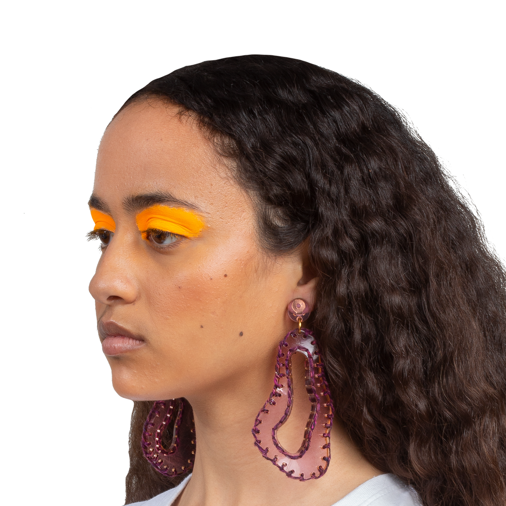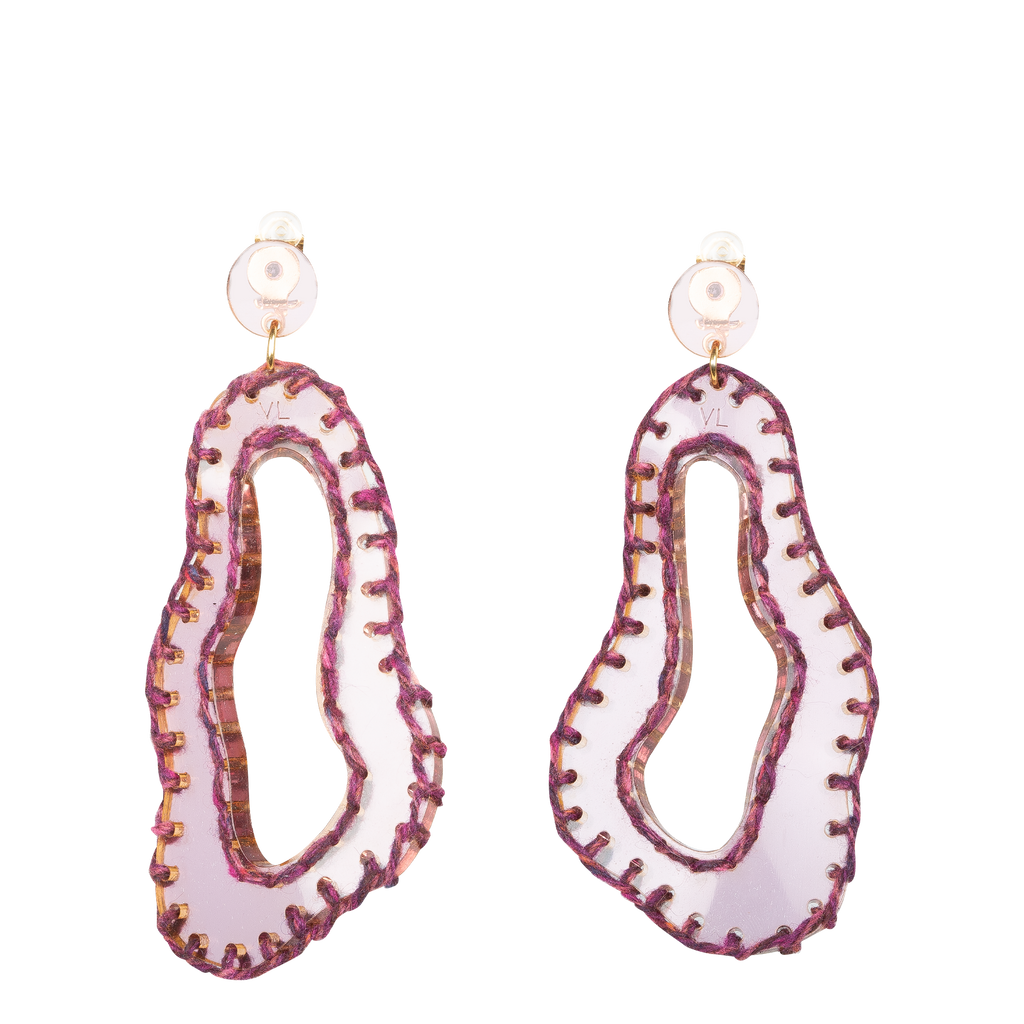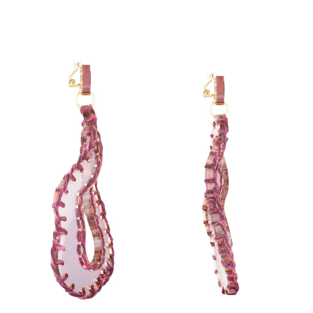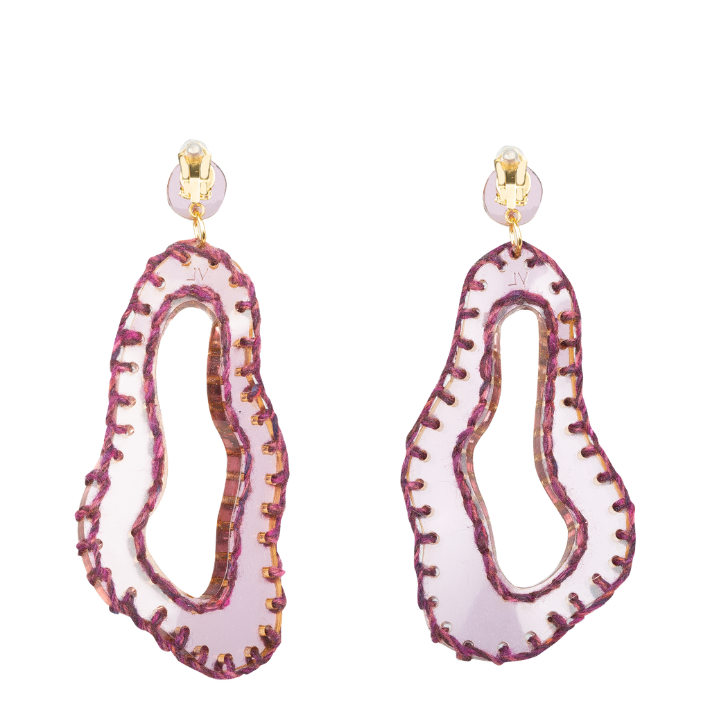 Lilac clipped earrings in plexiglass and natural fibre. As this is handmade no earring looks the same.