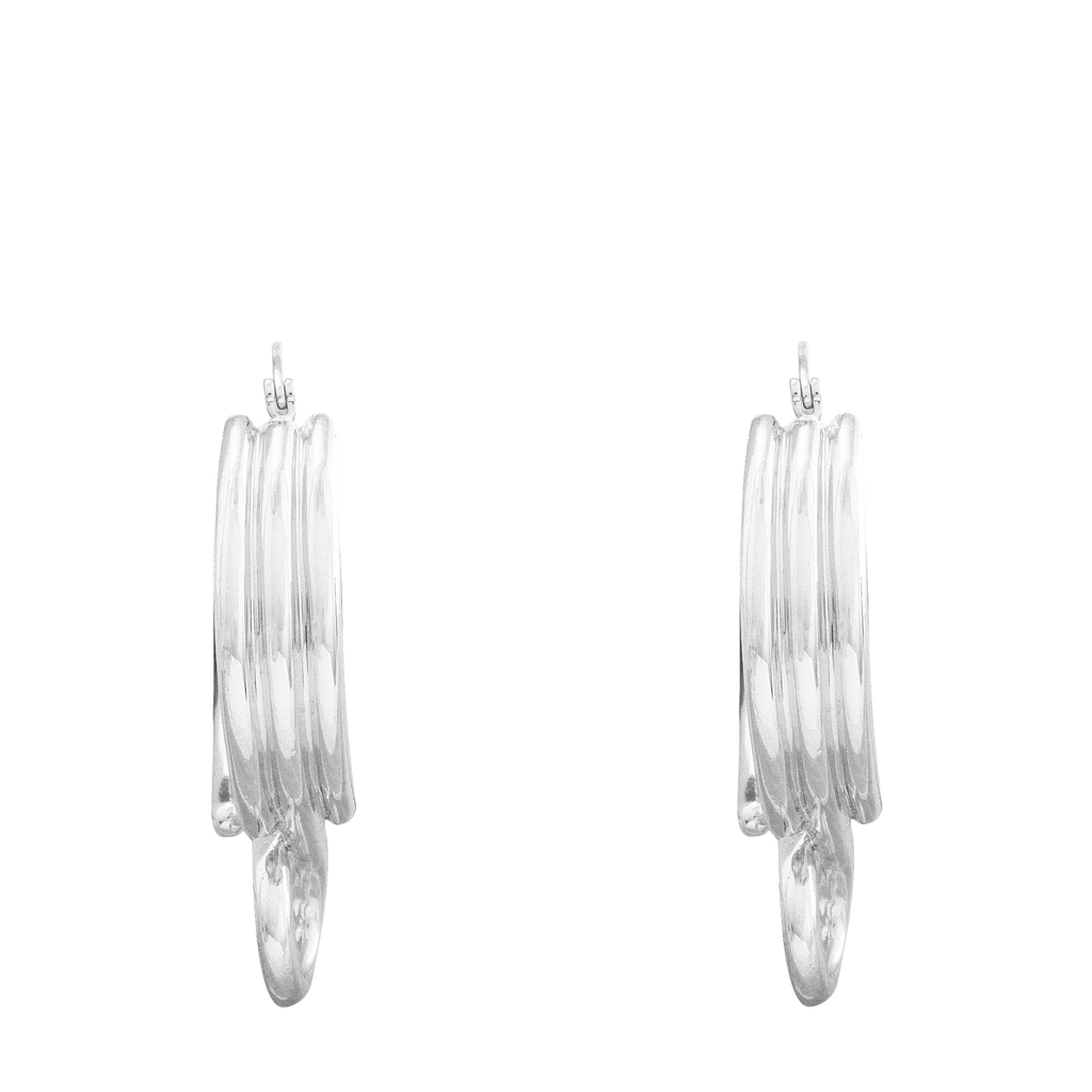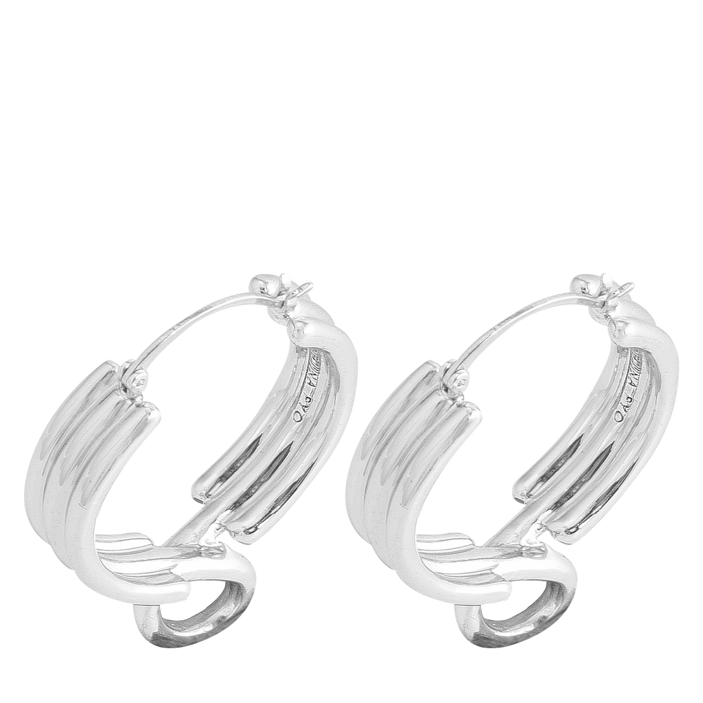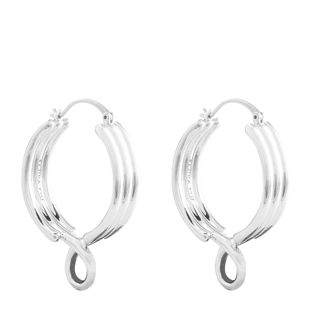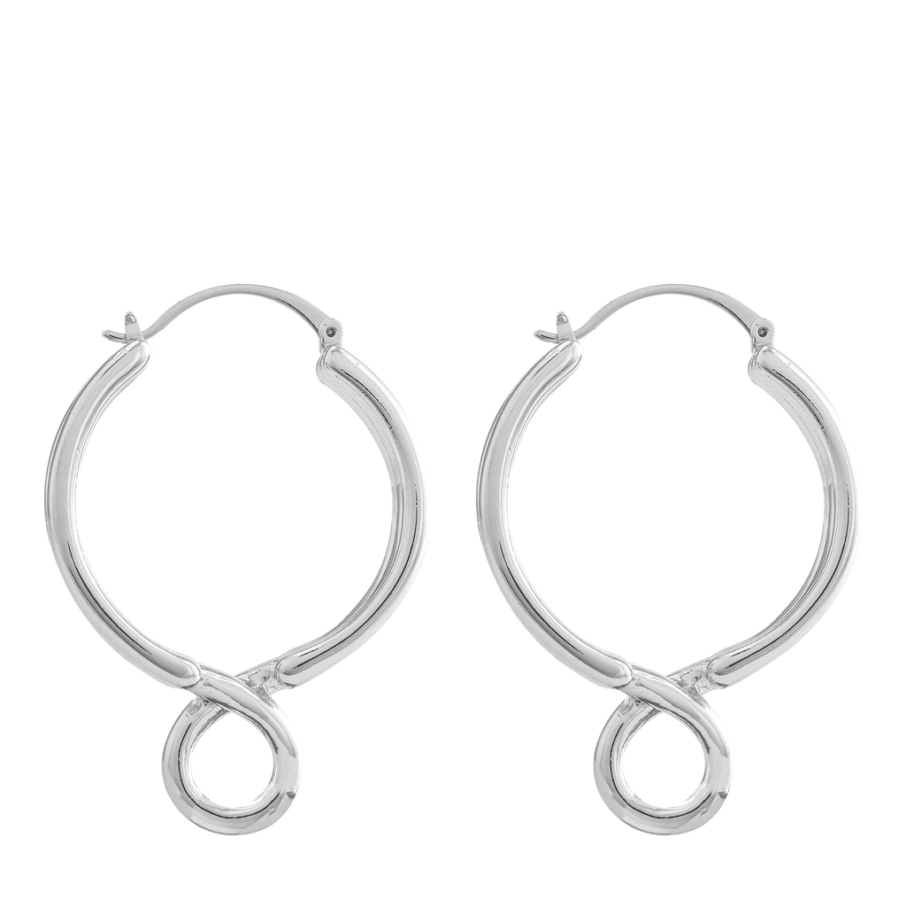 The Rejina Pyo Infinity Earrings in Silver Plated are hoop earrings with an asymmetric infinity sign.