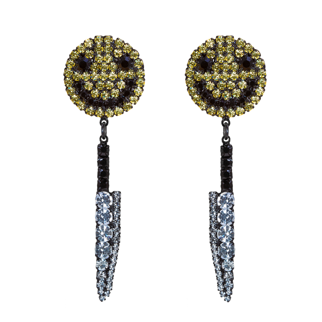 Smiley Knife Clip-On Earrings — Black & Yellow