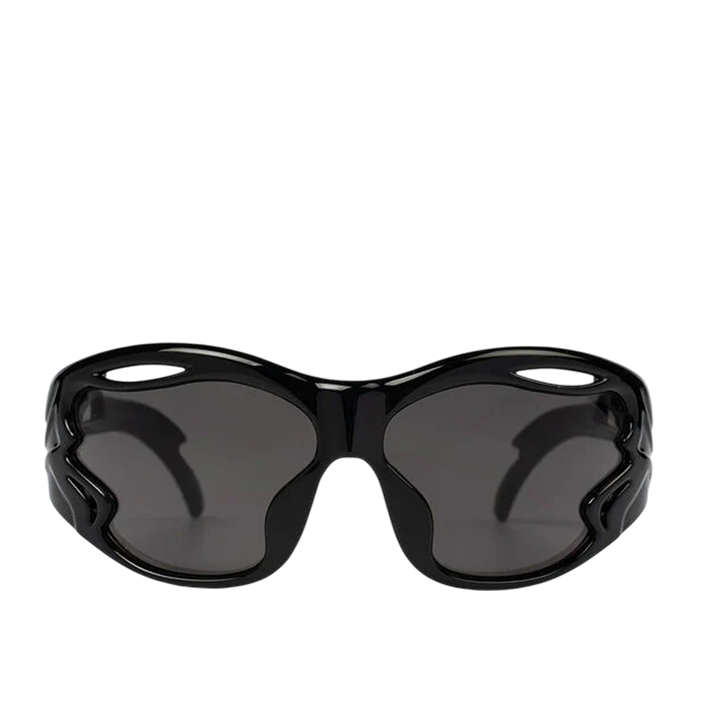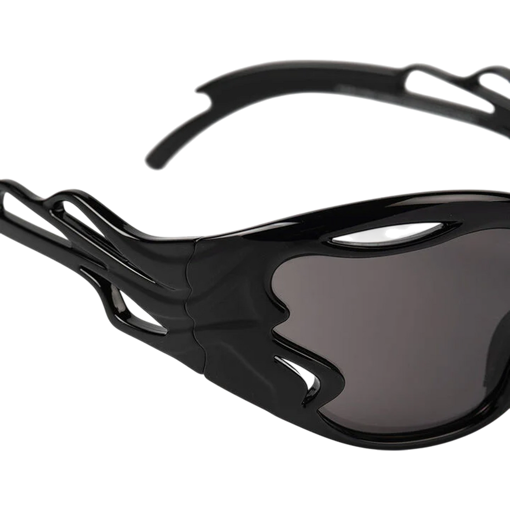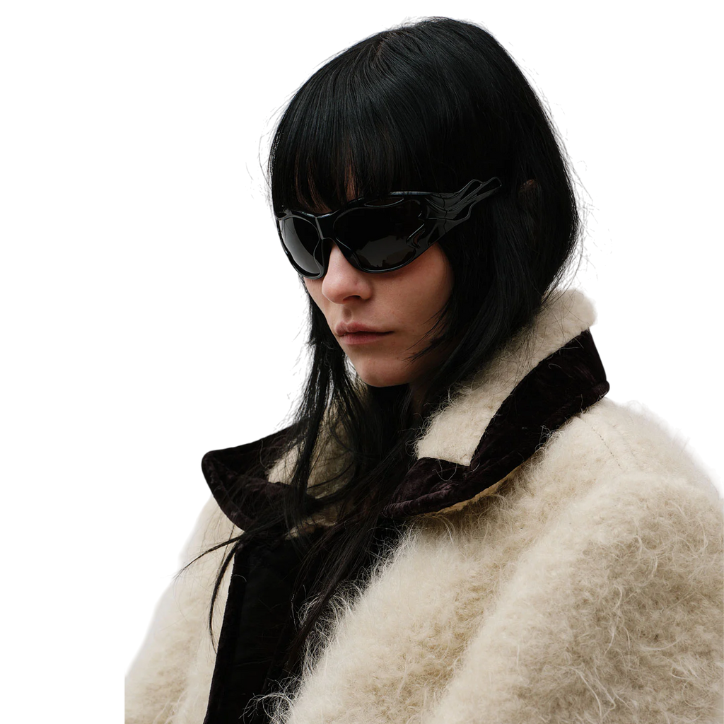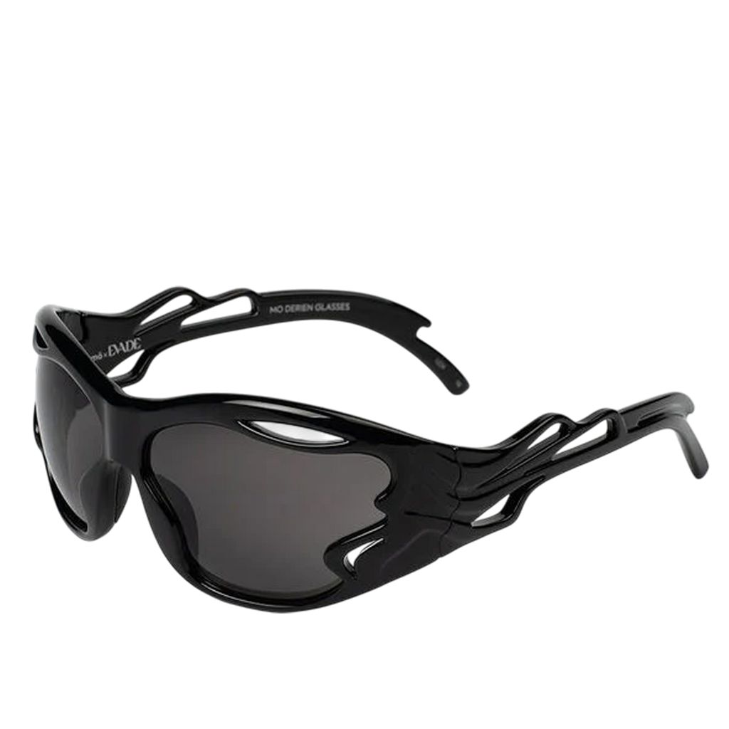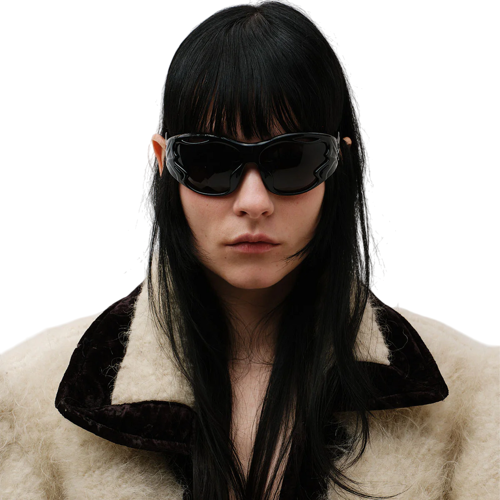 Designed in collaboration with Mo Eyewear, these unisex sunglasses take inspiration from artificial intelligence, featuring sculpted frames with fluid cut-outs that distort traditional form and function. The seamless integration of lenses and frames creates a striking monochromatic aesthetic.