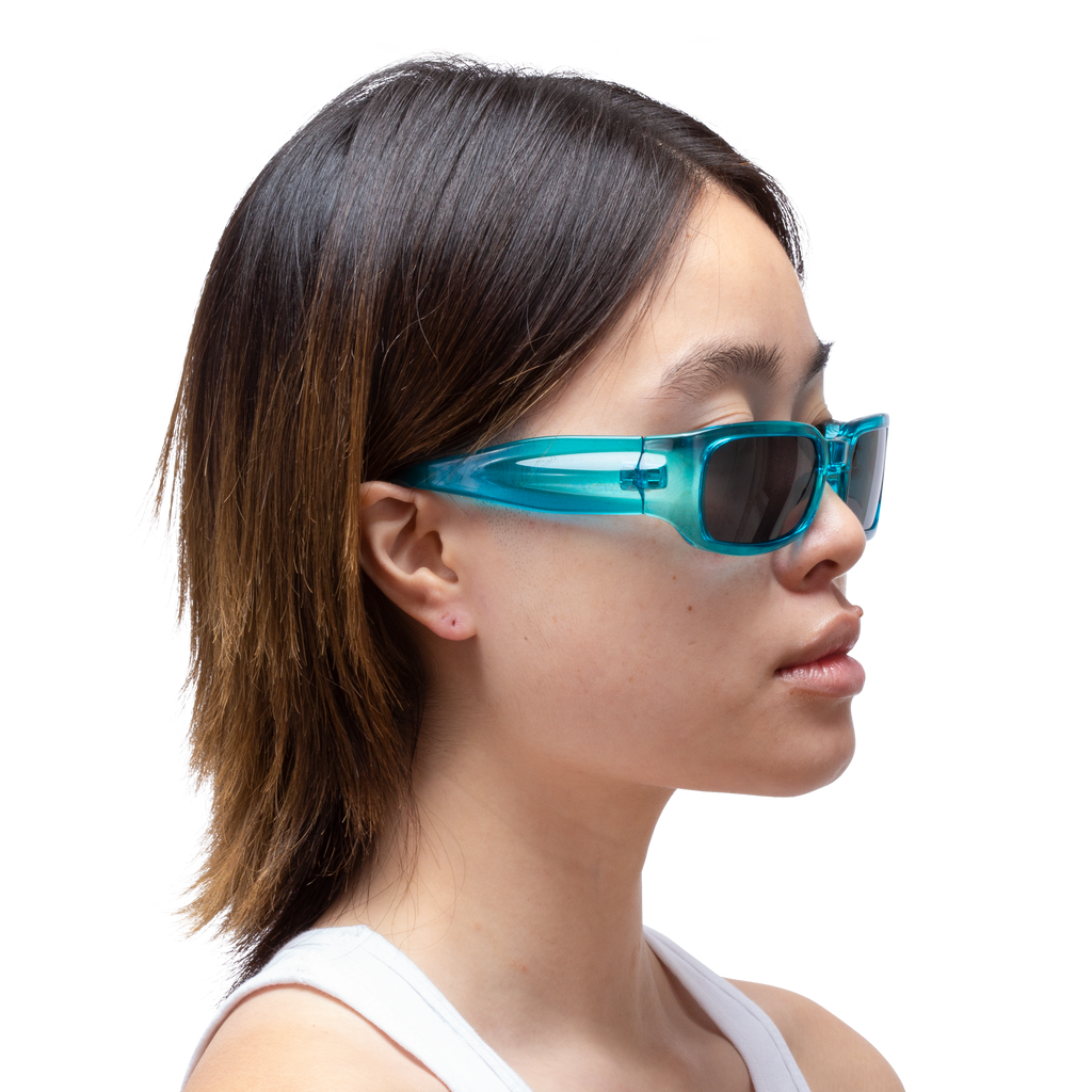 Gloop is a 3D-designed frame with protruding modules on each temple. Featuring polarized lenses with 100% UV protection and composed of injected TR90.