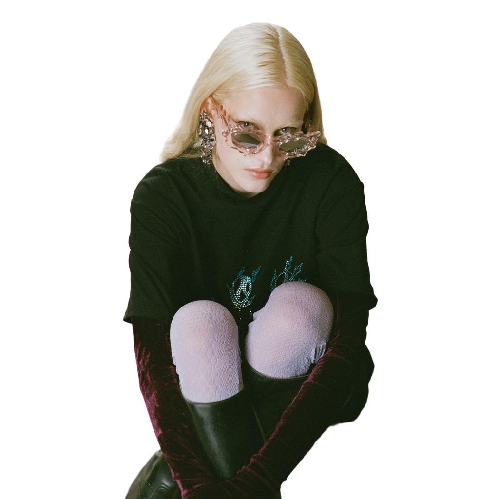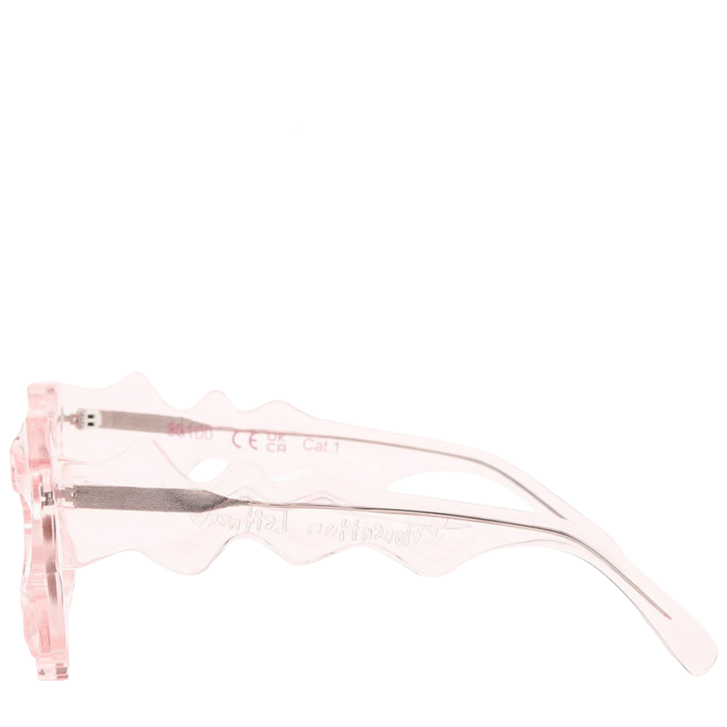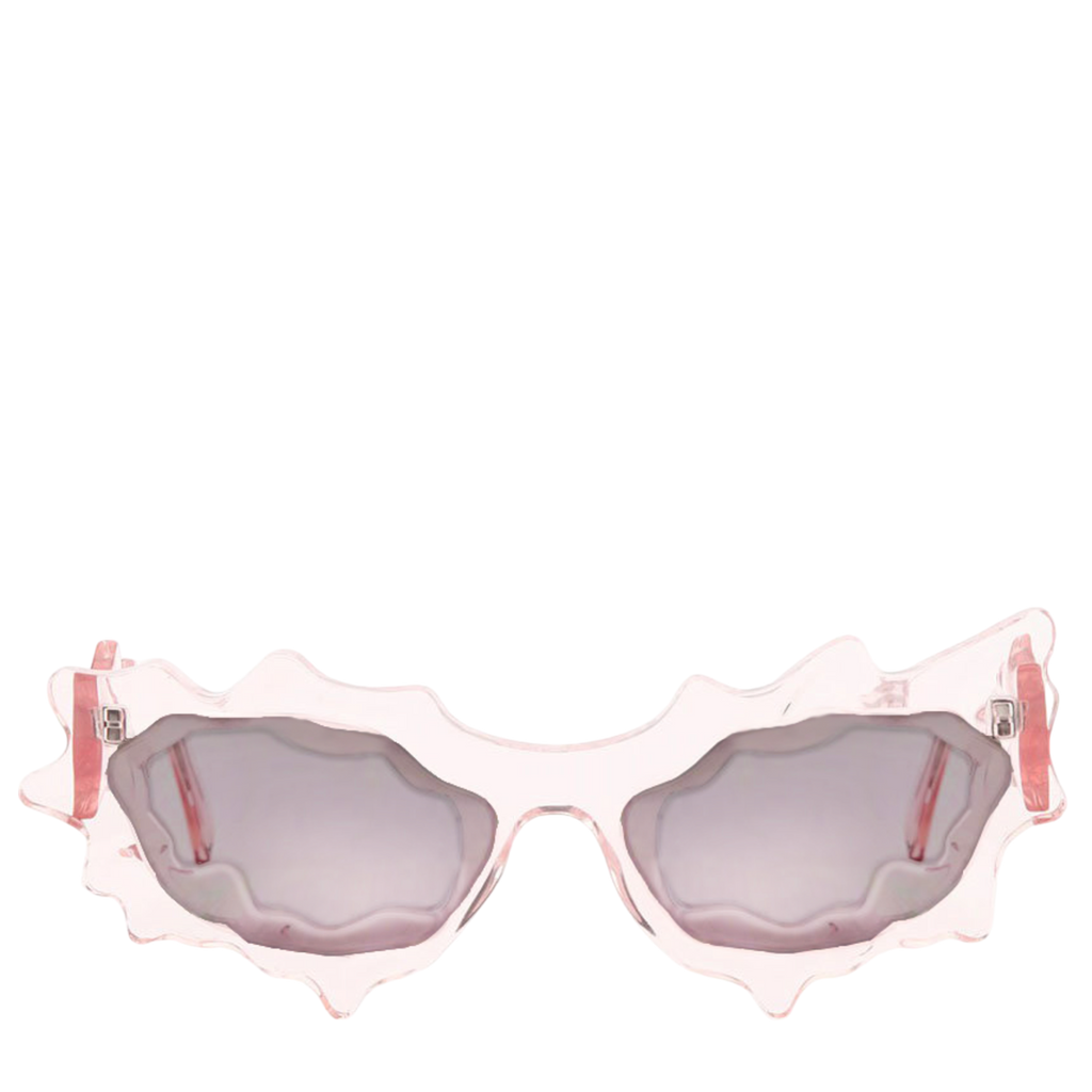 Revolutionizing style with sustainability: Florentina's chic Baby Pink Silver Spike sunglasses, a collaboration with Yuma Labs. Crafted from fully recyclable materials, these shades not only elevate your look but also champion eco-conscious fashion.