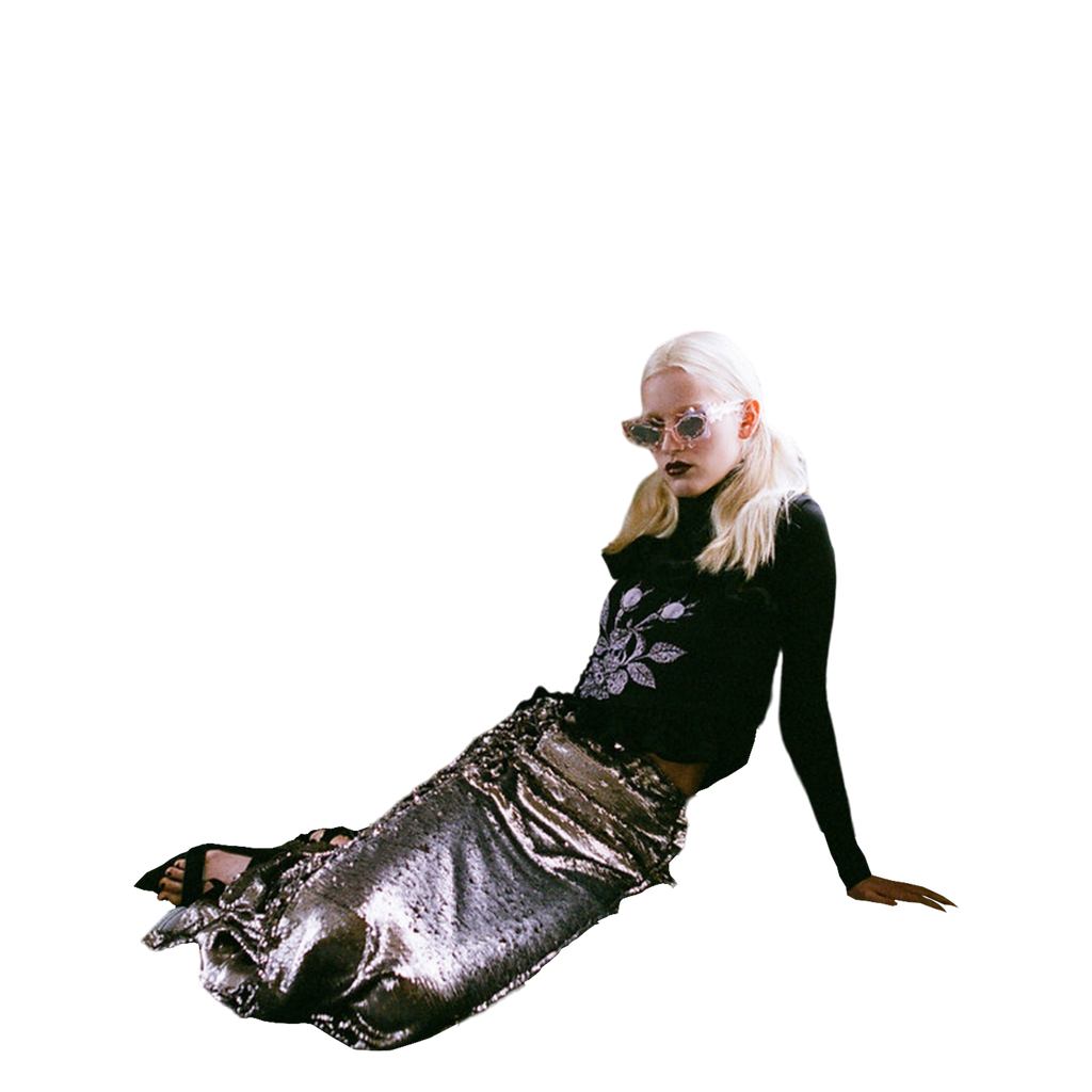 Florentina Leitner, an Austrian fashion and knitwear maestro, honed her craft at the prestigious Royal Academy of Fine Arts Antwerp in the Fashion Department. Her collections seamlessly blend elegance with a captivating playfulness. Robust silhouettes and distinctive shapes harmonize with intricate prints and unconventional fabric mixes, defining the unique allure of her creations.