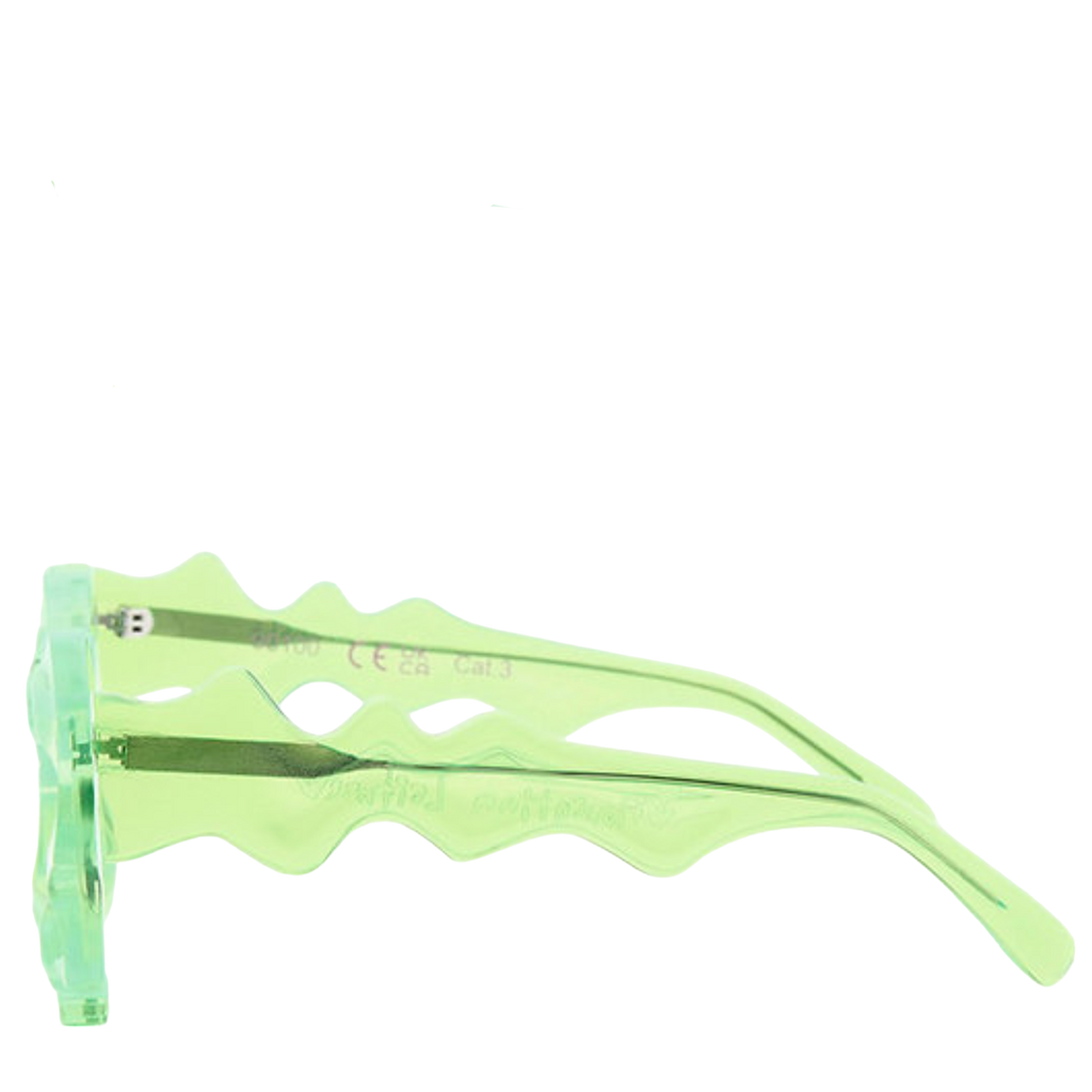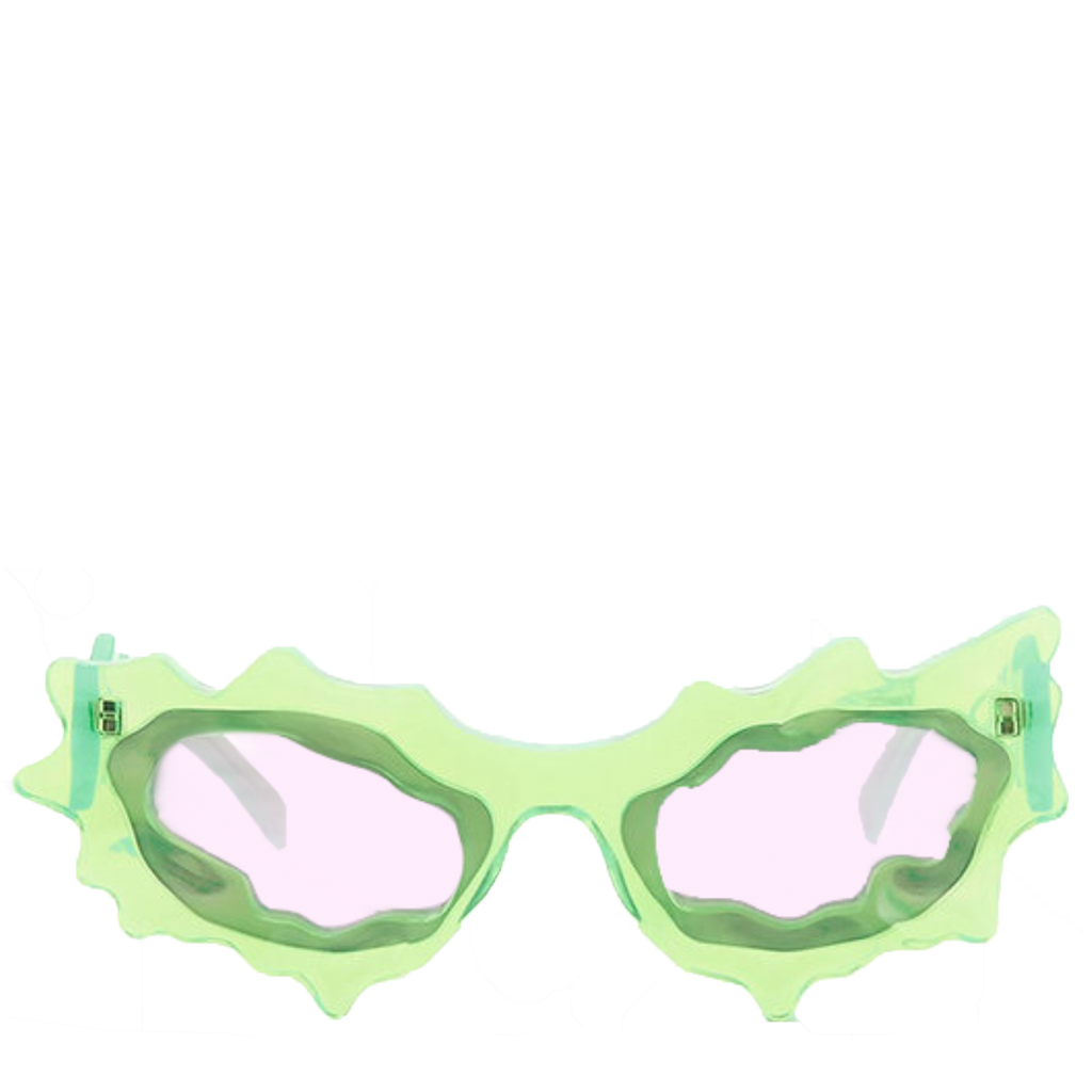 Revolutionizing style with sustainability: Florentina's chic Green and Pink Spike sunglasses, a collaboration with Yuma Labs. Crafted from fully recyclable materials, these shades not only elevate your look but also champion eco-conscious fashion.