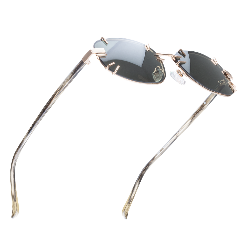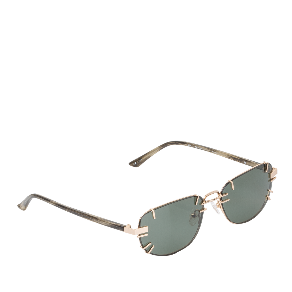 Rectangular stainless steel sunglasses horn / light gold. Double bridge. Olive green lenses with 100% UV protection. Part of the Y/Project x Linda Farrow collaboration.