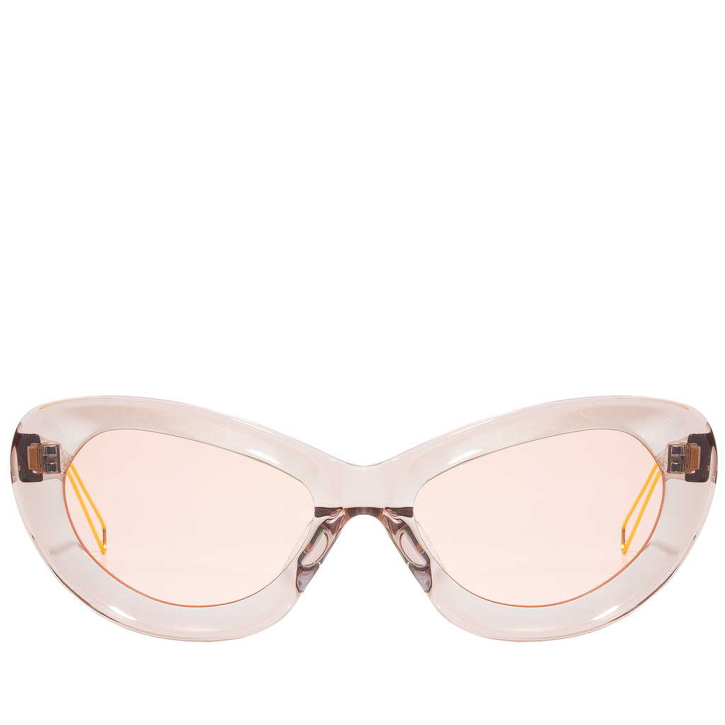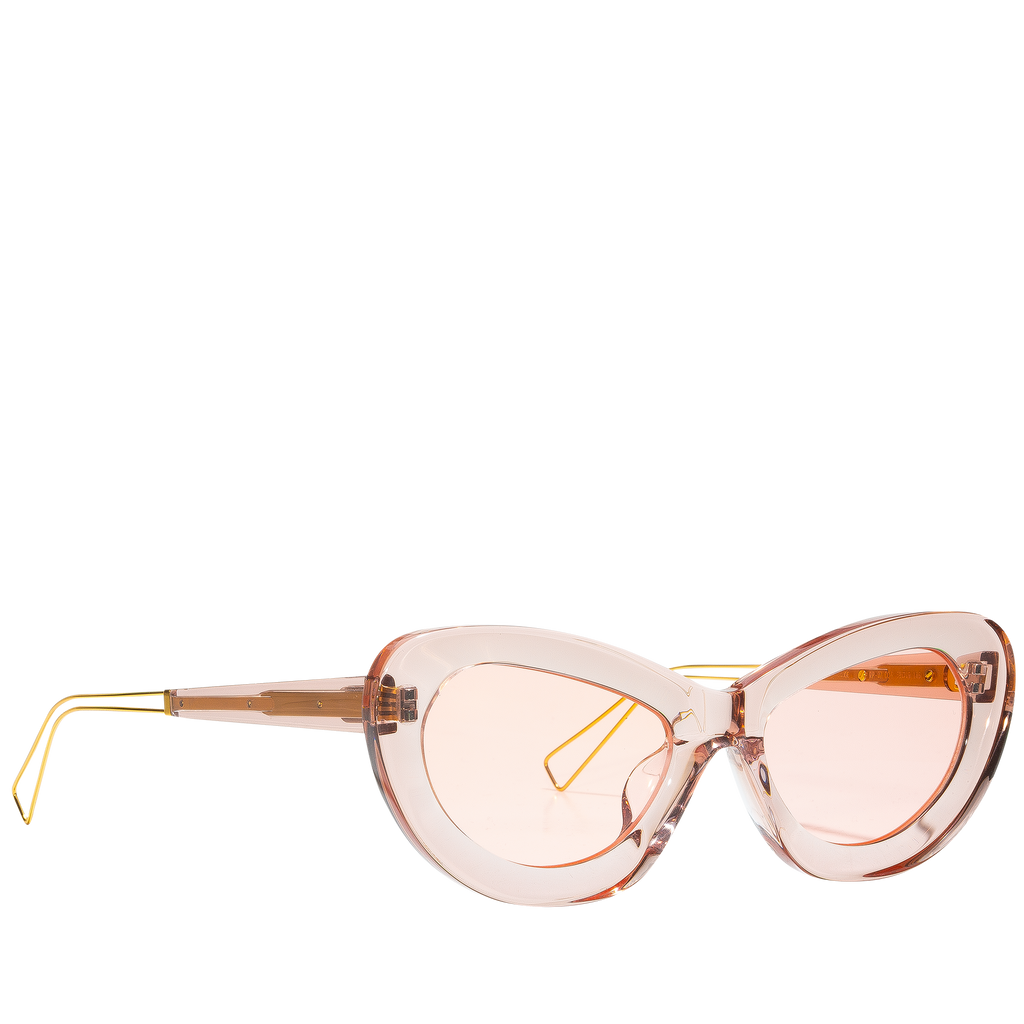 In collaboration with Projekt Produkt. Pebble frame, pink frames with pink lens and gold temple.