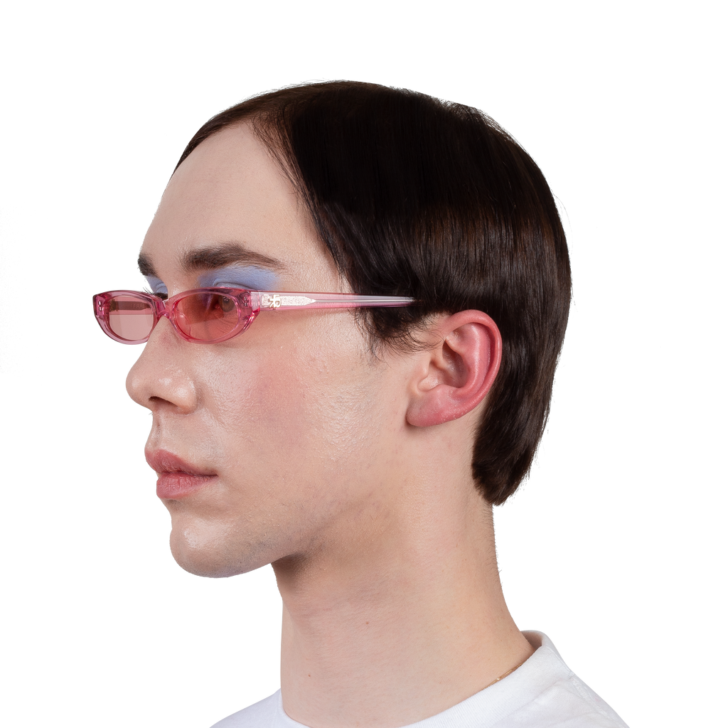 Oval acetate sunglasses in pink. Tonal lenses with 100% UV protection.