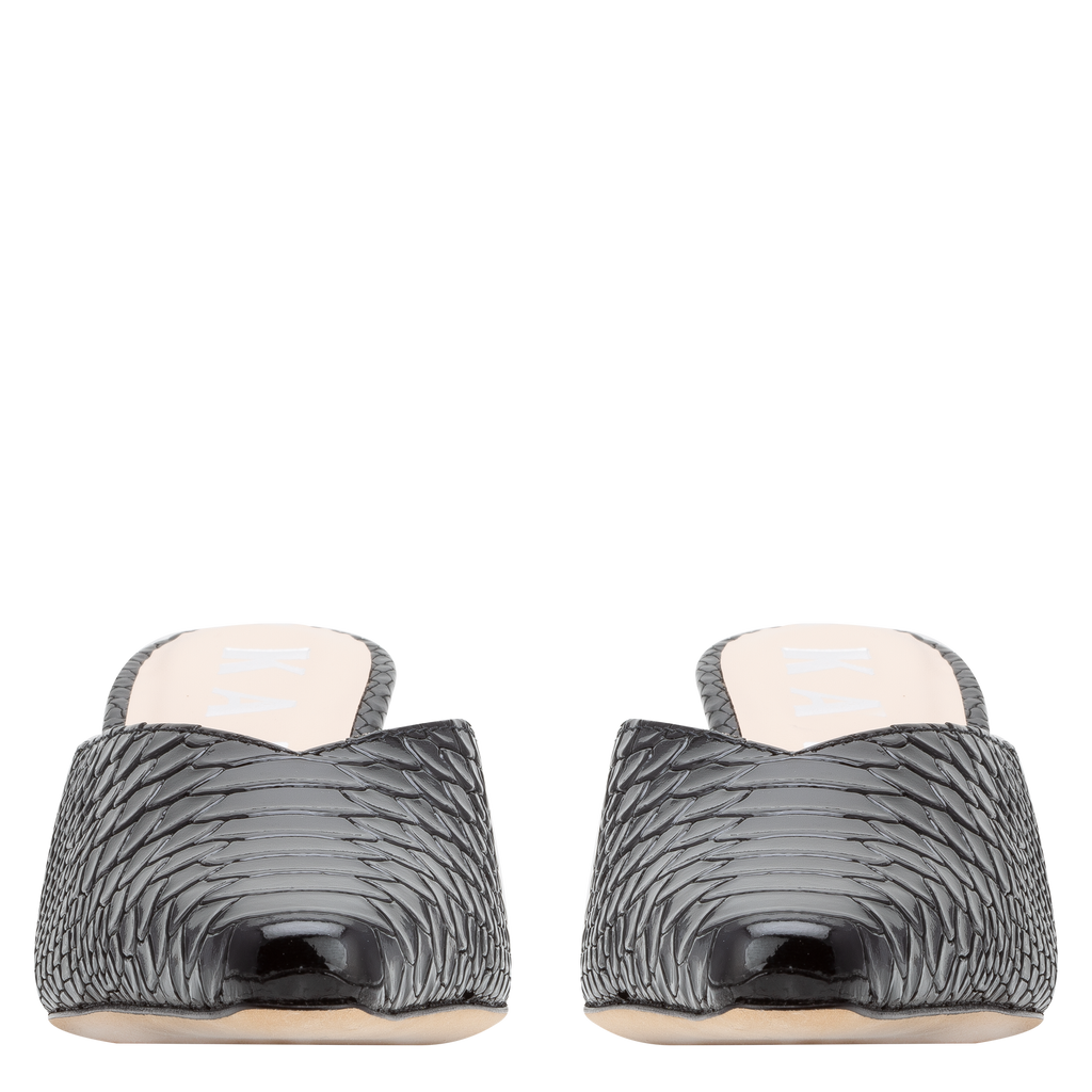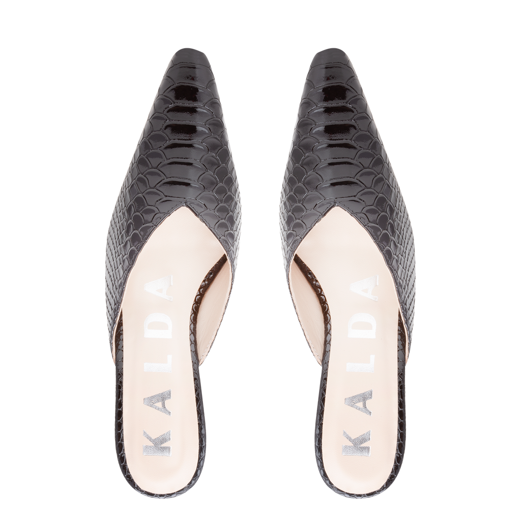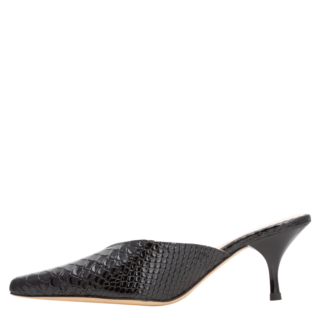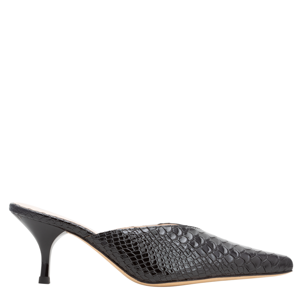 Add some texture to your look with the Alba Mule in embossed snake. Featuring a point-toe, flattering cut and great heel height for a day-to-night wear. Approx. 5.5 cm heel height. This style has a narrow fit so we recommend taking a size up if you are in between sizes