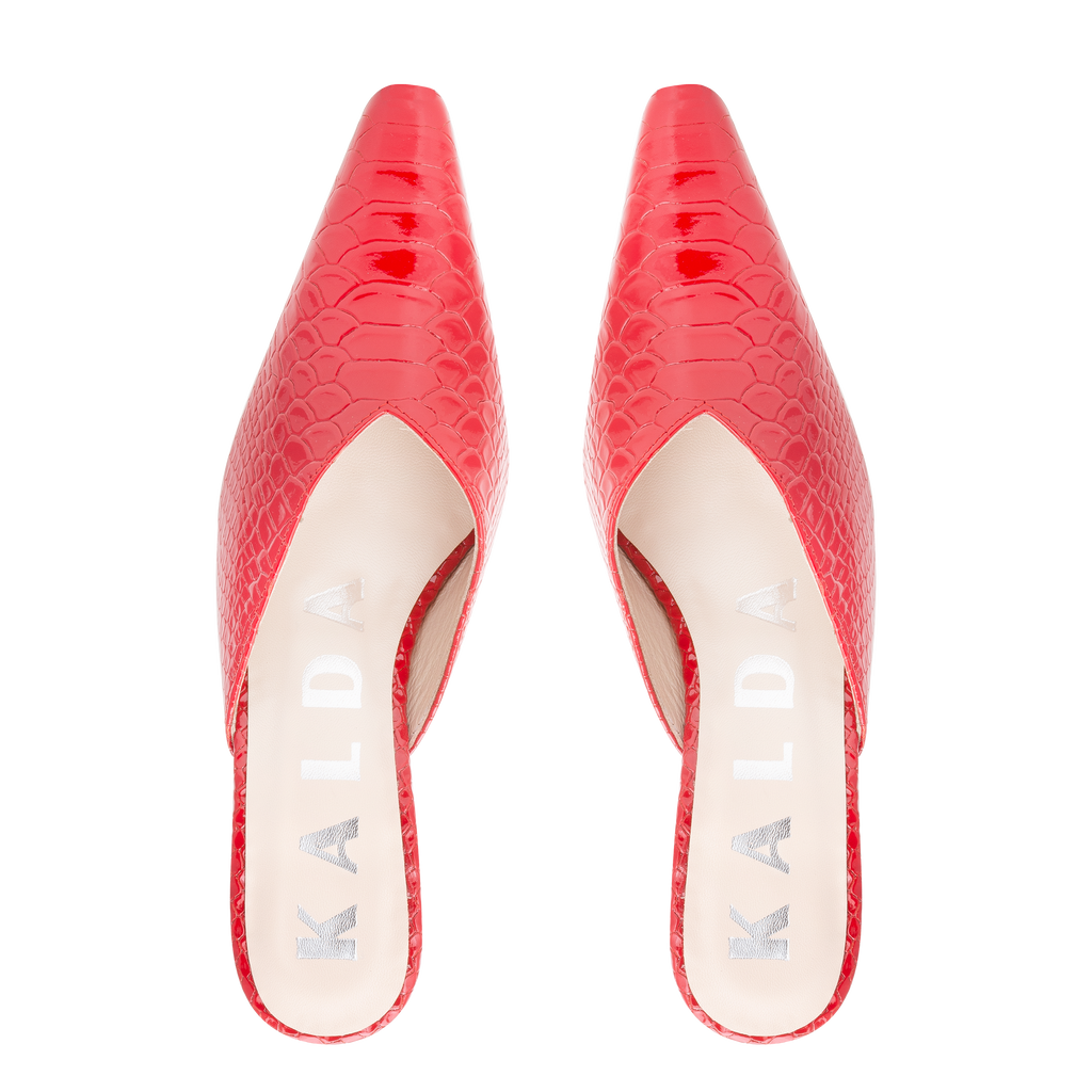 Alba Embossed Snake Mule — Red