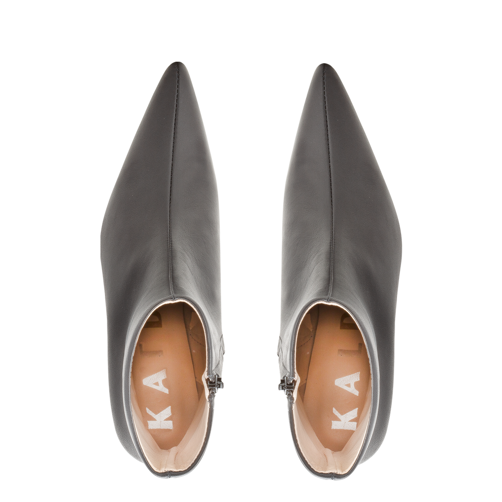 These brown Kalda Island leather boots feature an ankle length, side zip fastening and pointed toe. Approx. 7 cm heel height.