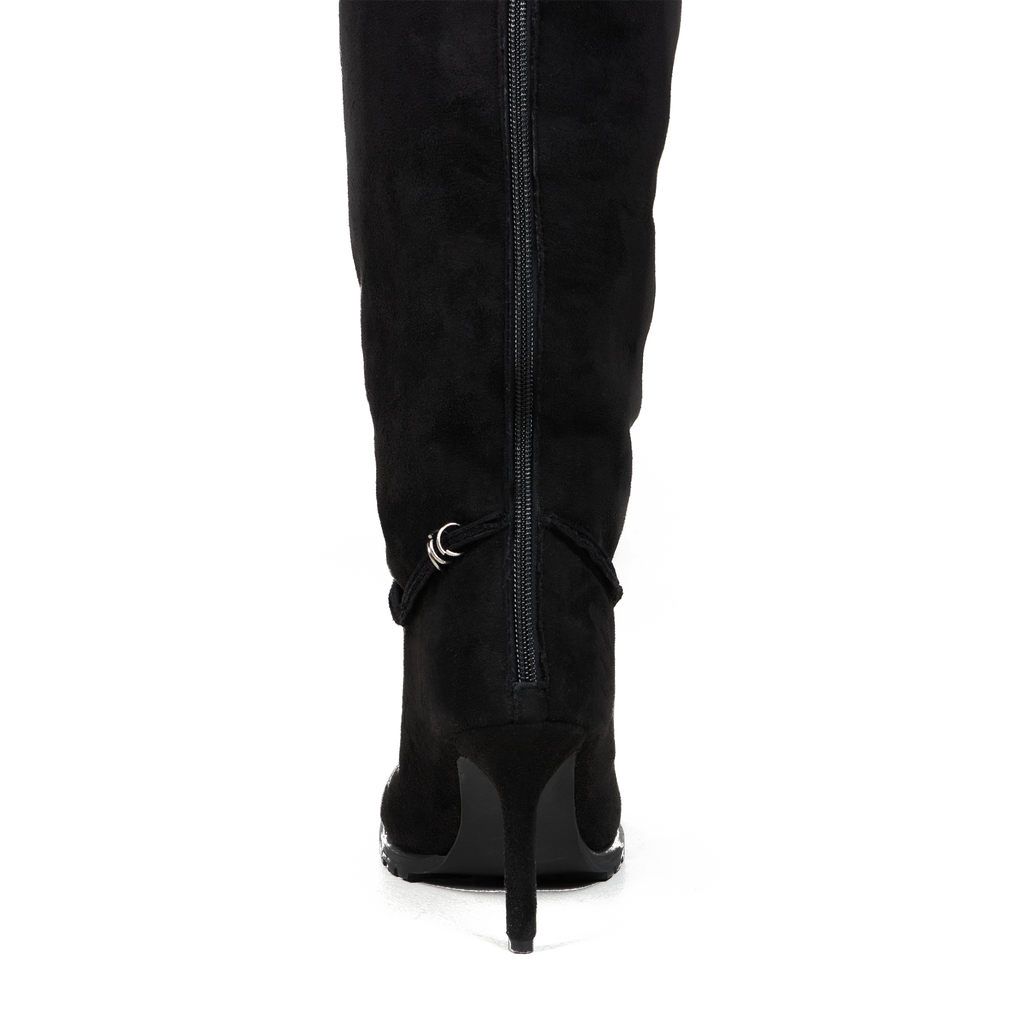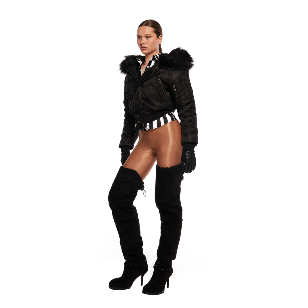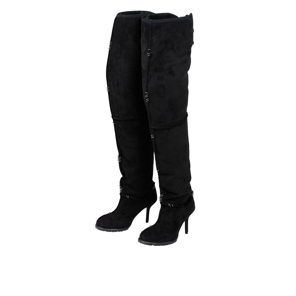 Pierced Thigh-High Suede Shearling Heeled Boots ( Made-to-Order )