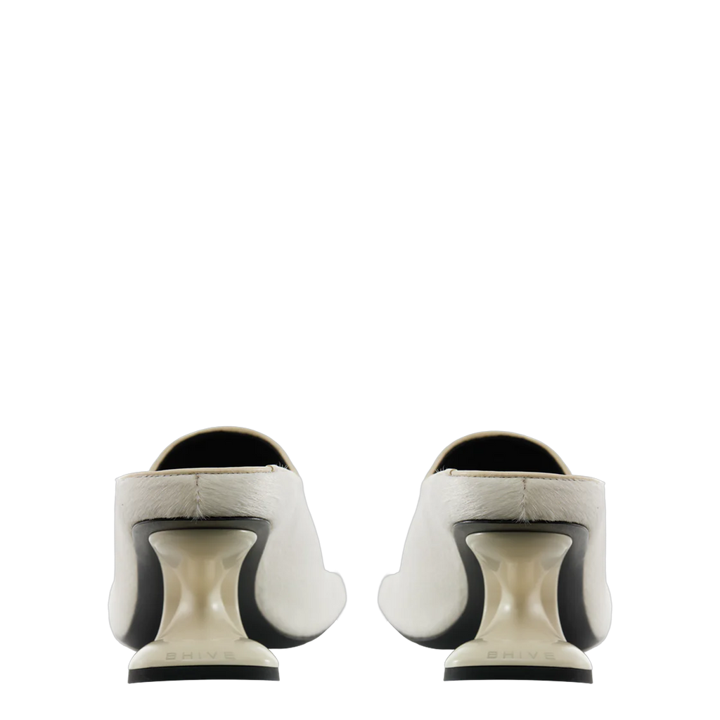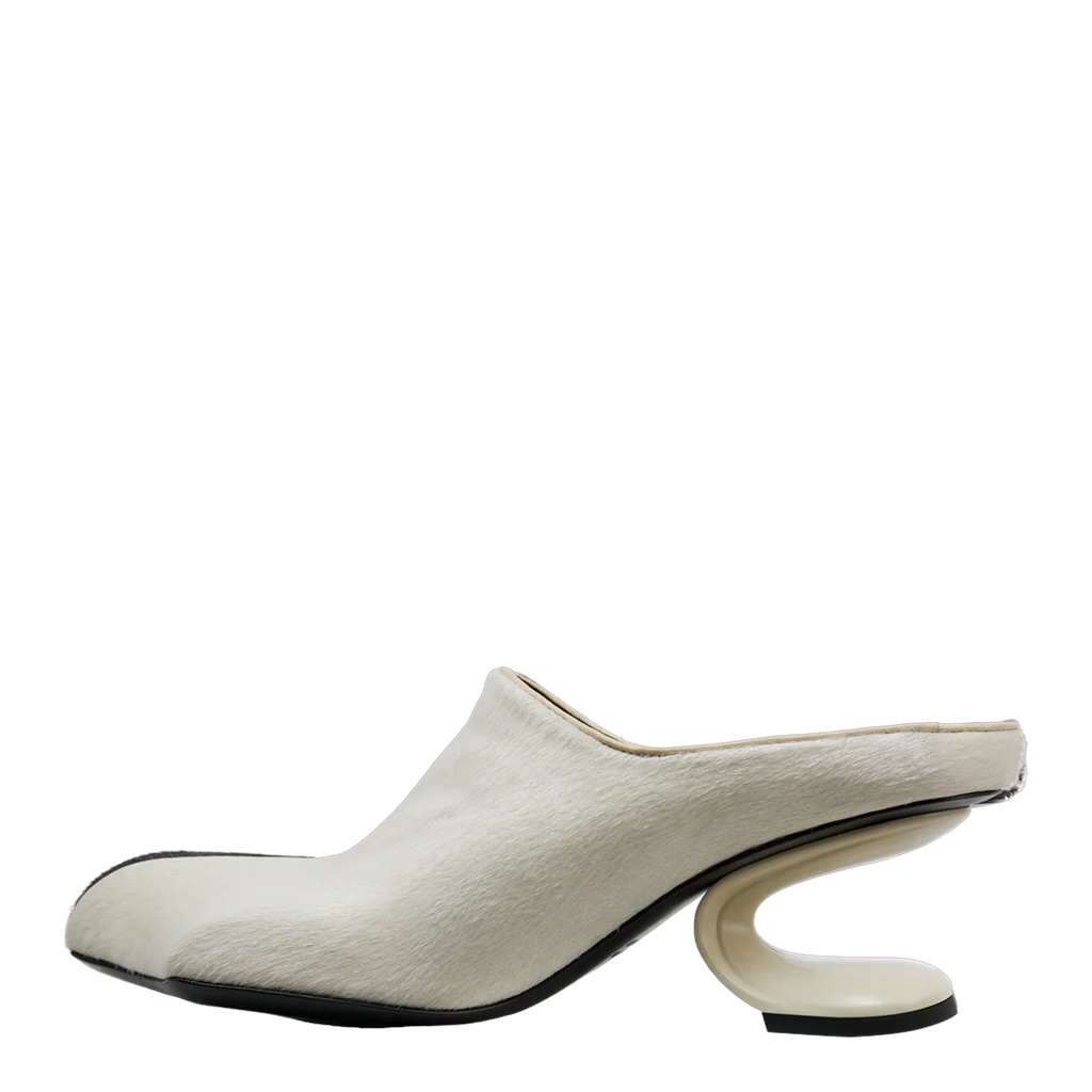 Exploring unique human foot shapes, Bhive draws inspiration from the fierce 'dragon claw.' Incorporating this element into the toe design creates a bold impact. Luxurious sheepskin emphasizes the central joint shape, adding a dynamic flow. The curved heel structure, despite its industrial feel, harmoniously conflicts with the toe design, adding visual intrigue.