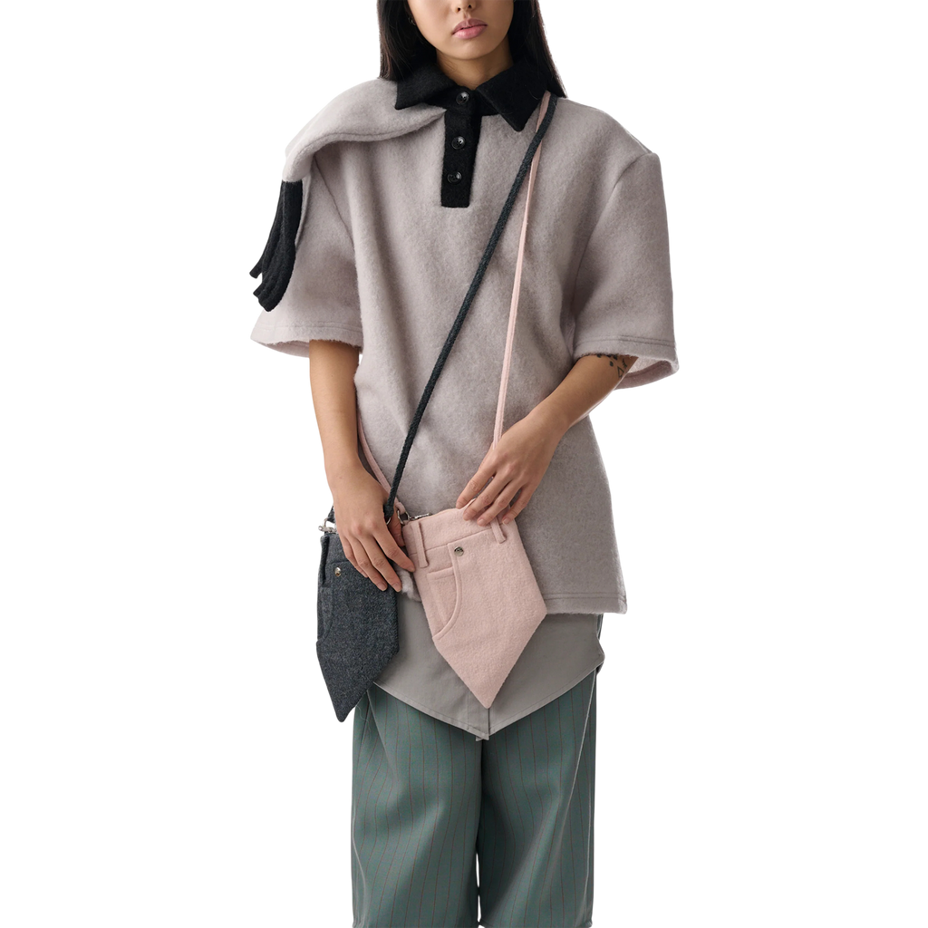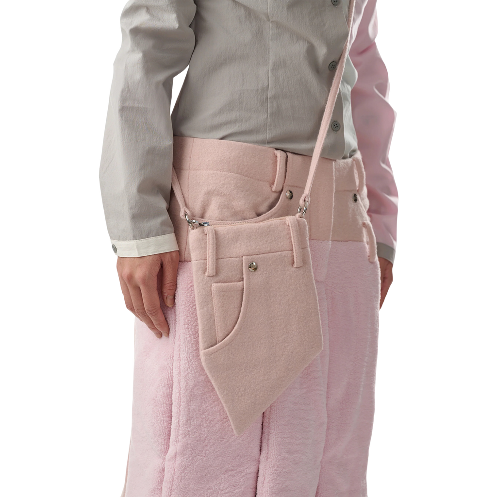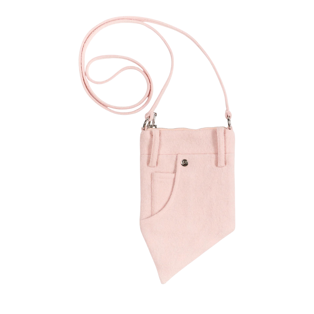 Compact crossbody bag inspired by classic trouser waistband and pocket construction.