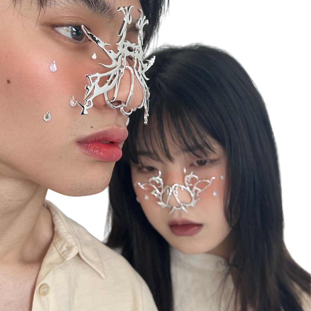 KONSENSUSS, founded in 2022 by Abbir Malik and Winnie Hao, emerged from a shared passion for accessories and adornment. Though they never met at Parsons School of Design, fate connected them in a 9-to-5 fashion job. Bonding over their love for fantasy in movies, video games, and avatars, they pursued jewelry-making after hours, sparking the creation of KONSENSUSS. Combining 3D modeling, printing, analog sculpting, and various materials, the duo crafts bold, avant-garde pieces that challenge conventional design.