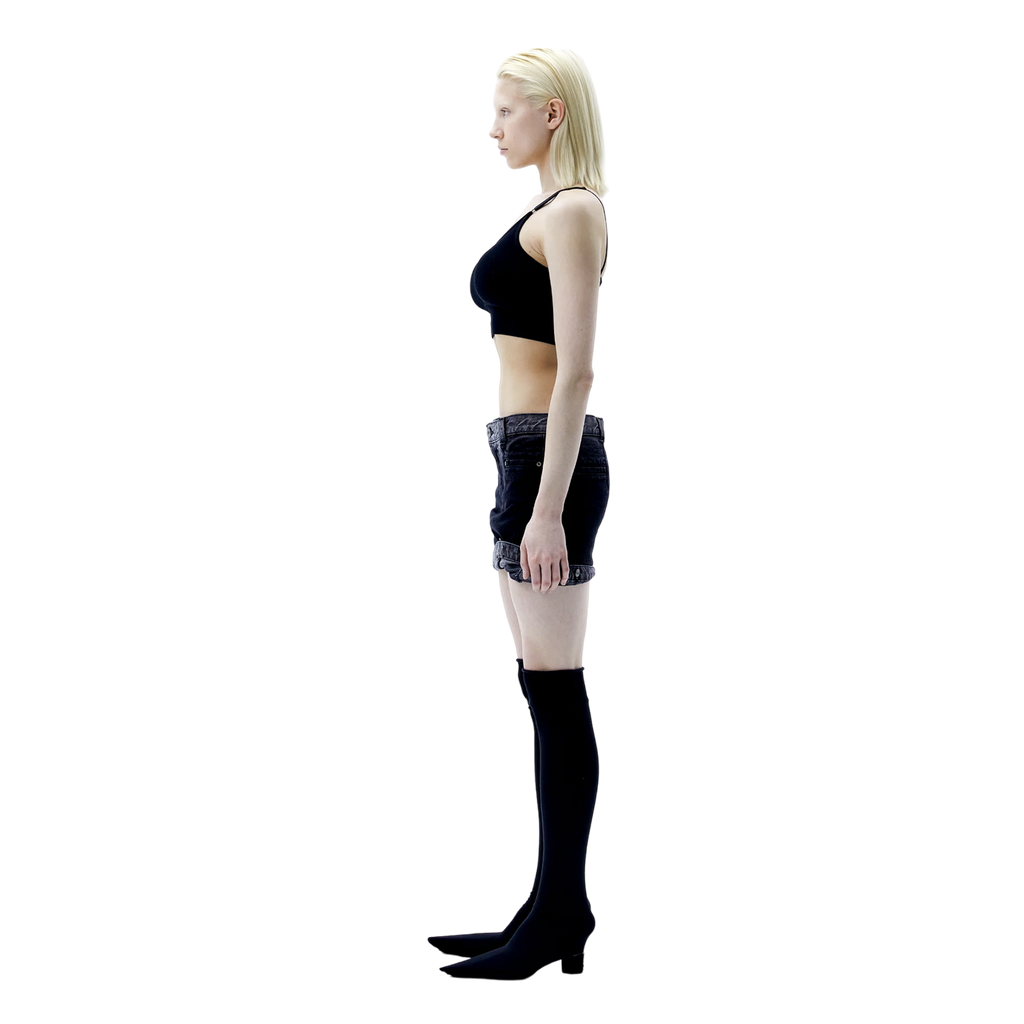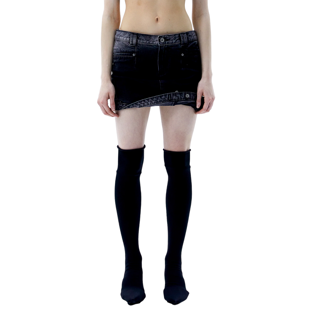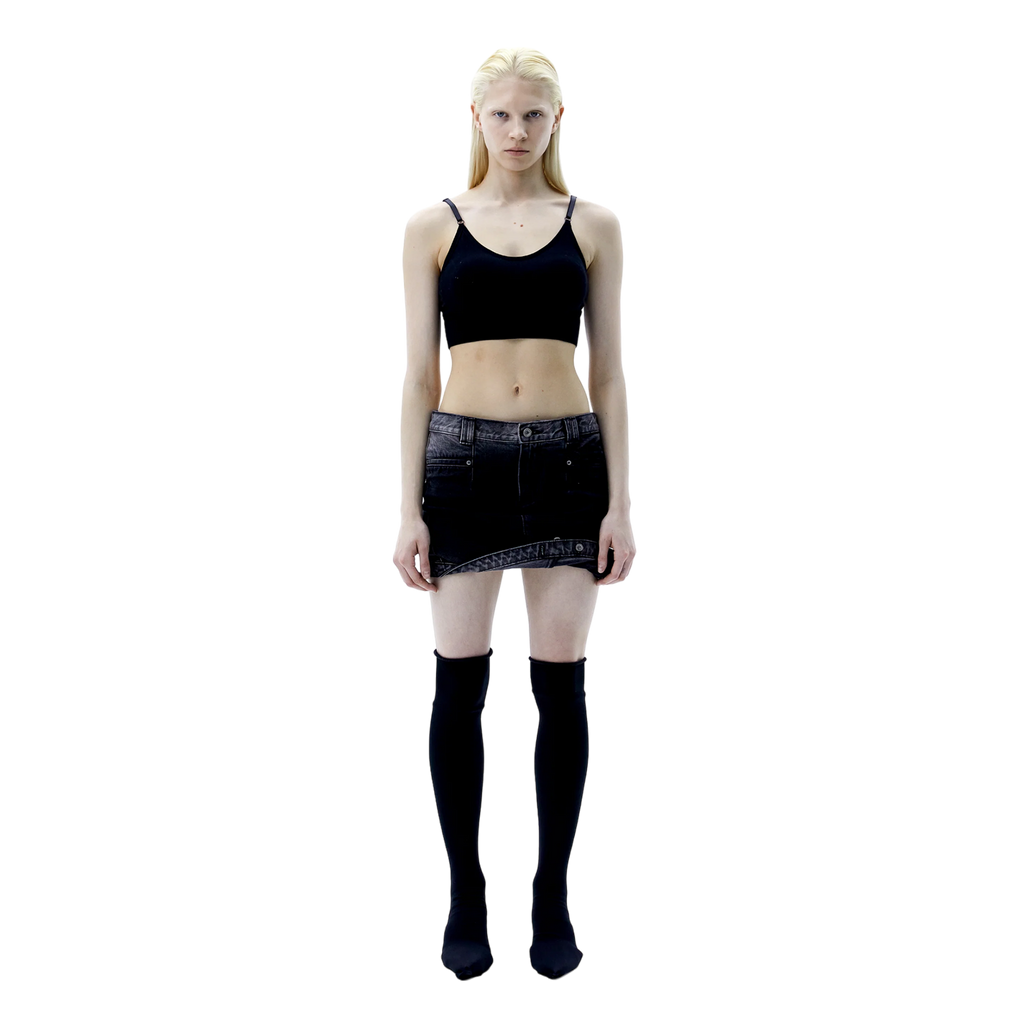 (Ariella) Spoiled Denim Skirt — Washed Black