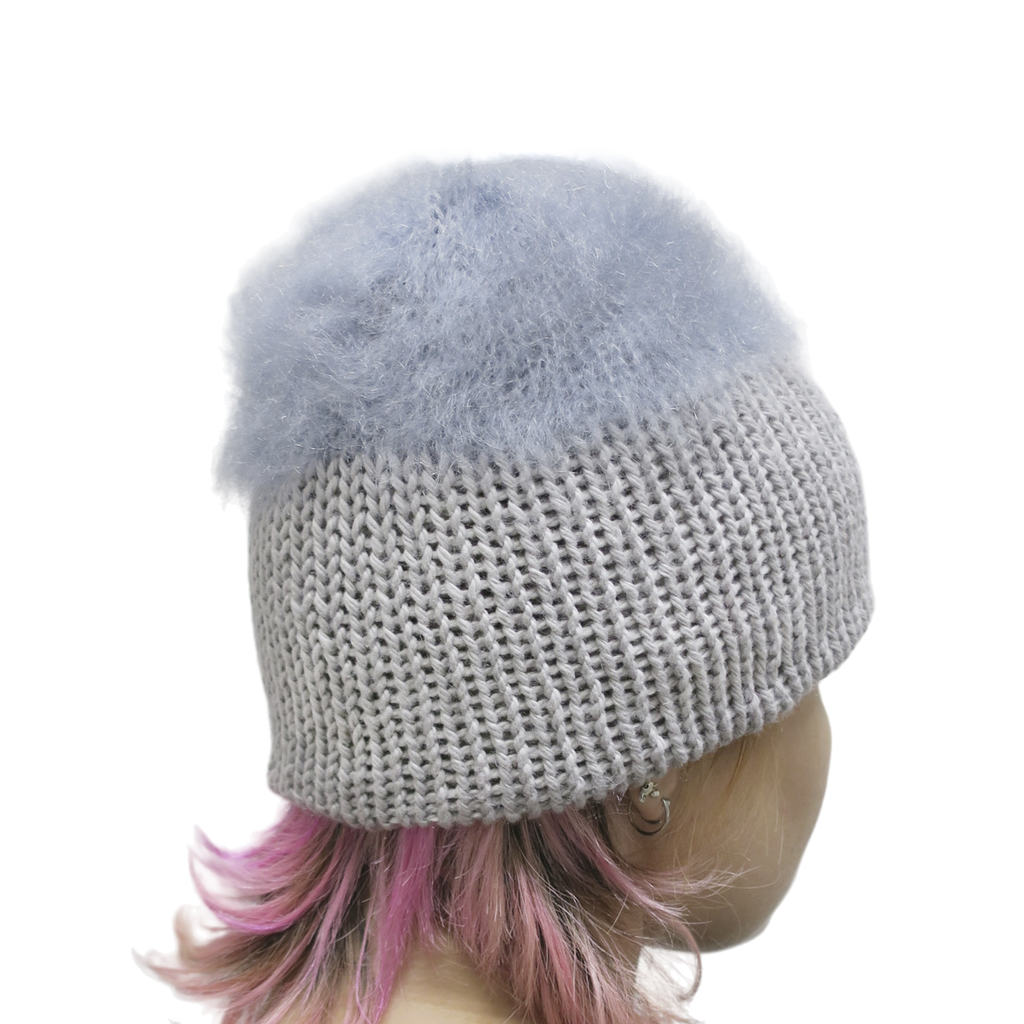 Elevate your winter look with our cozy grey beanie, crafted from a luxurious cotton/mohair combo. The unturned edge adds a touch of effortless style, while the fuzzy top brings warmth and texture.