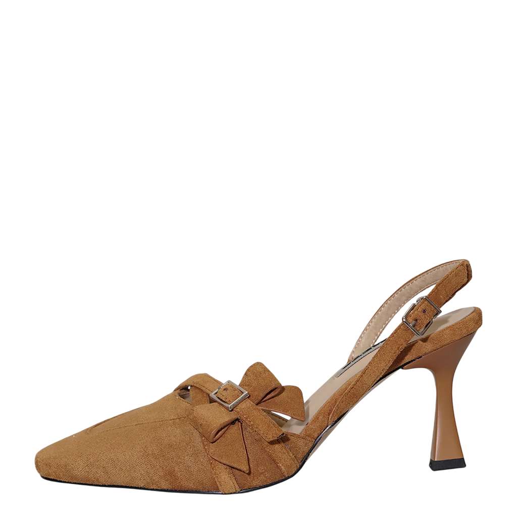 Elevate your style with these elegant brown suede heels, featuring a charming bow detail that adds a touch of femininity. The soft suede material ensures comfort, while the sleek heel offers just the right amount of lift for all-day wear. Perfect for both casual and dressy occasions, these heels effortlessly blend sophistication and playful charm.