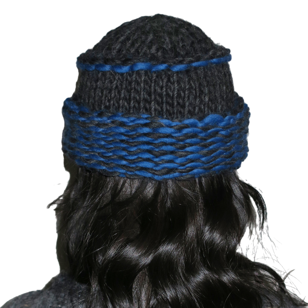 Elevate your winter style with our hand-knit bulky yarn hat. Featuring a linen-colored base with a chic taupe accent, this hat is both versatile and cozy. The convertible design allows you to switch from a classic beanie to a trendy docker style with a roll brim. One size fits most, thanks to its stretchy construction.