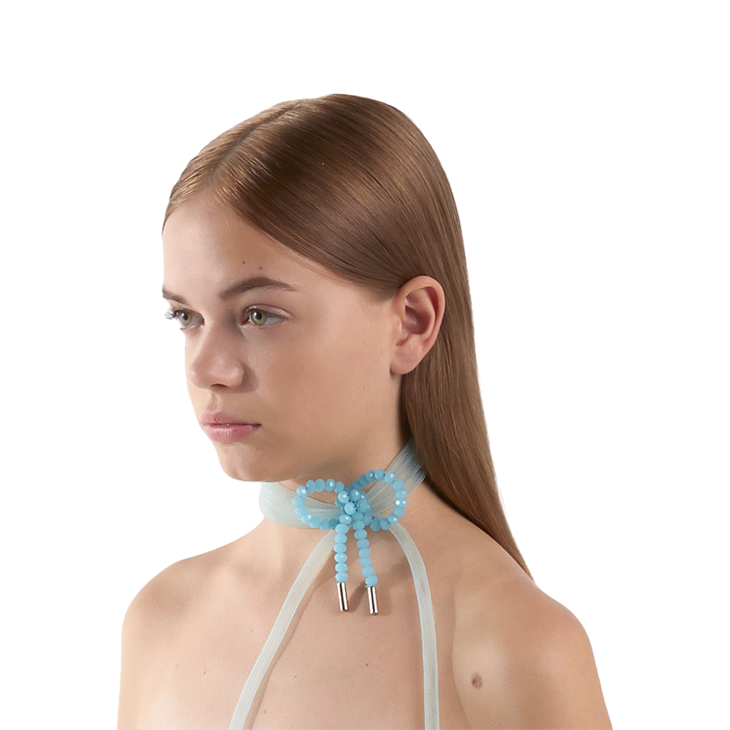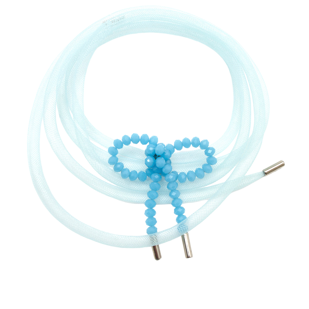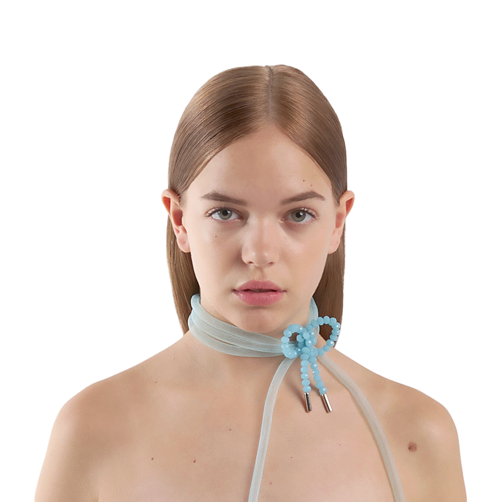Handcrafted with meticulous detail, this amazing necklace features faceted jade stones and a grey glazed brass barrette. The nylon lace is stretchable and super comfortable, with metallic ends for added flair.