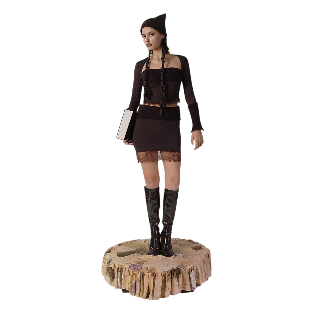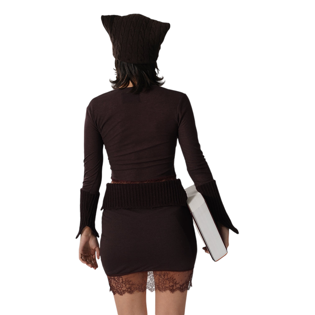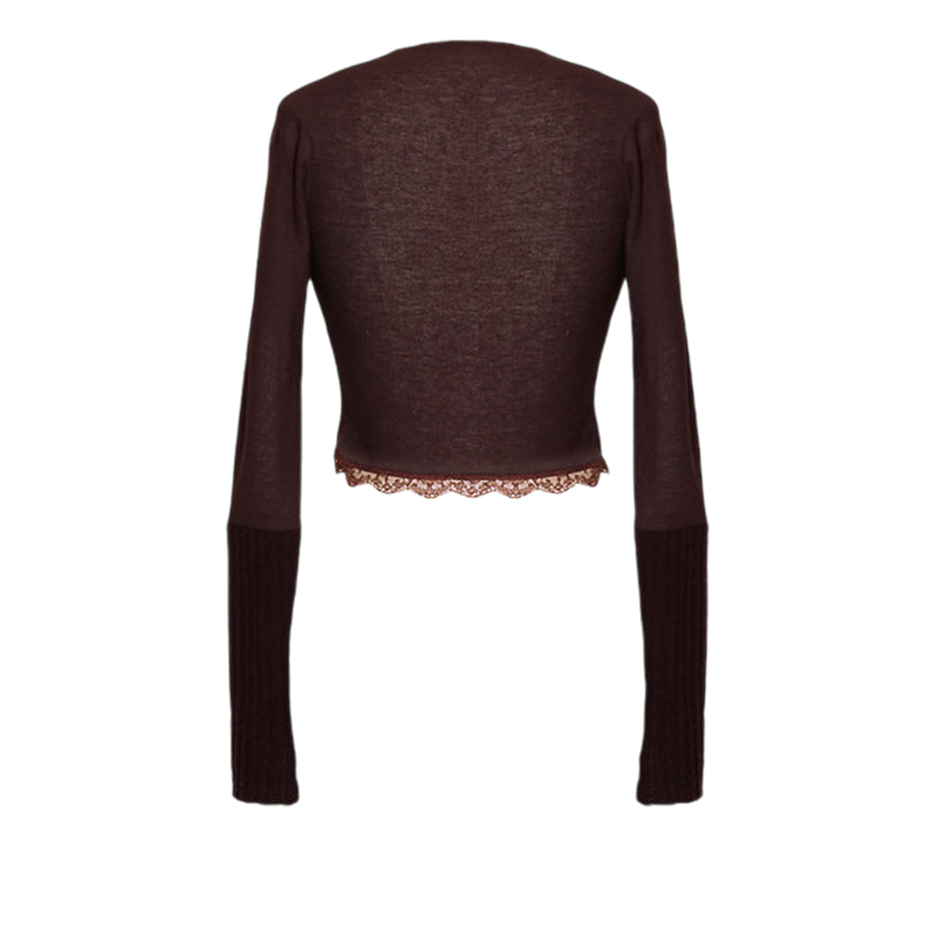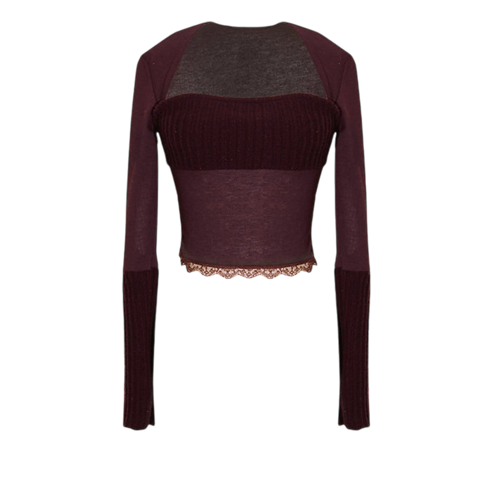 Introducing our Cozy Knit Maroon Top, the ultimate addition to your fall wardrobe. Made with a lightweight wool knit, this top is perfect for those chilly days and nights. The cozy knit fabric on the front bust and cuff adds a touch of warmth and comfort, while the delicate lace on the hem adds a dainty and feminine touch.