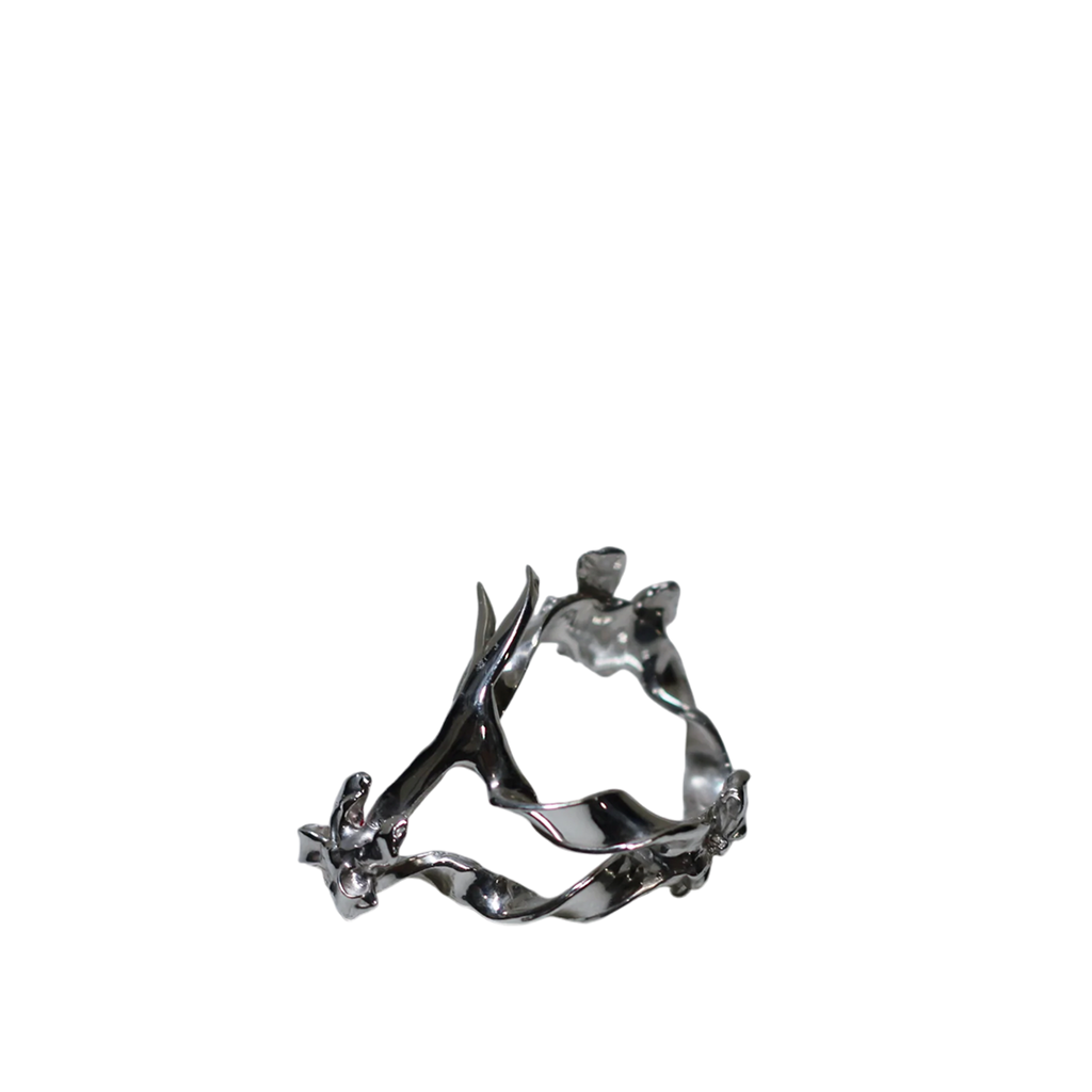 KONSENSUSS, founded in 2022 by Abbir Malik and Winnie Hao, emerged from a shared passion for accessories and adornment. Though they never met at Parsons School of Design, fate connected them in a 9-to-5 fashion job. Bonding over their love for fantasy in movies, video games, and avatars, they pursued jewelry-making after hours, sparking the creation of KONSENSUSS. Combining 3D modeling, printing, analog sculpting, and various materials, the duo crafts bold, avant-garde pieces that challenge conventional design.