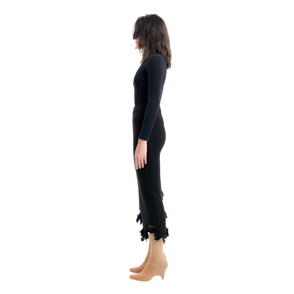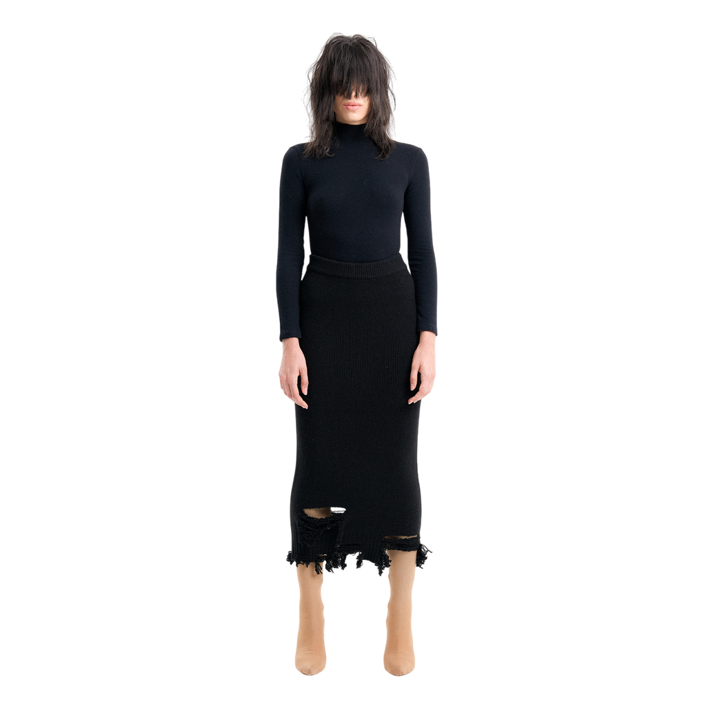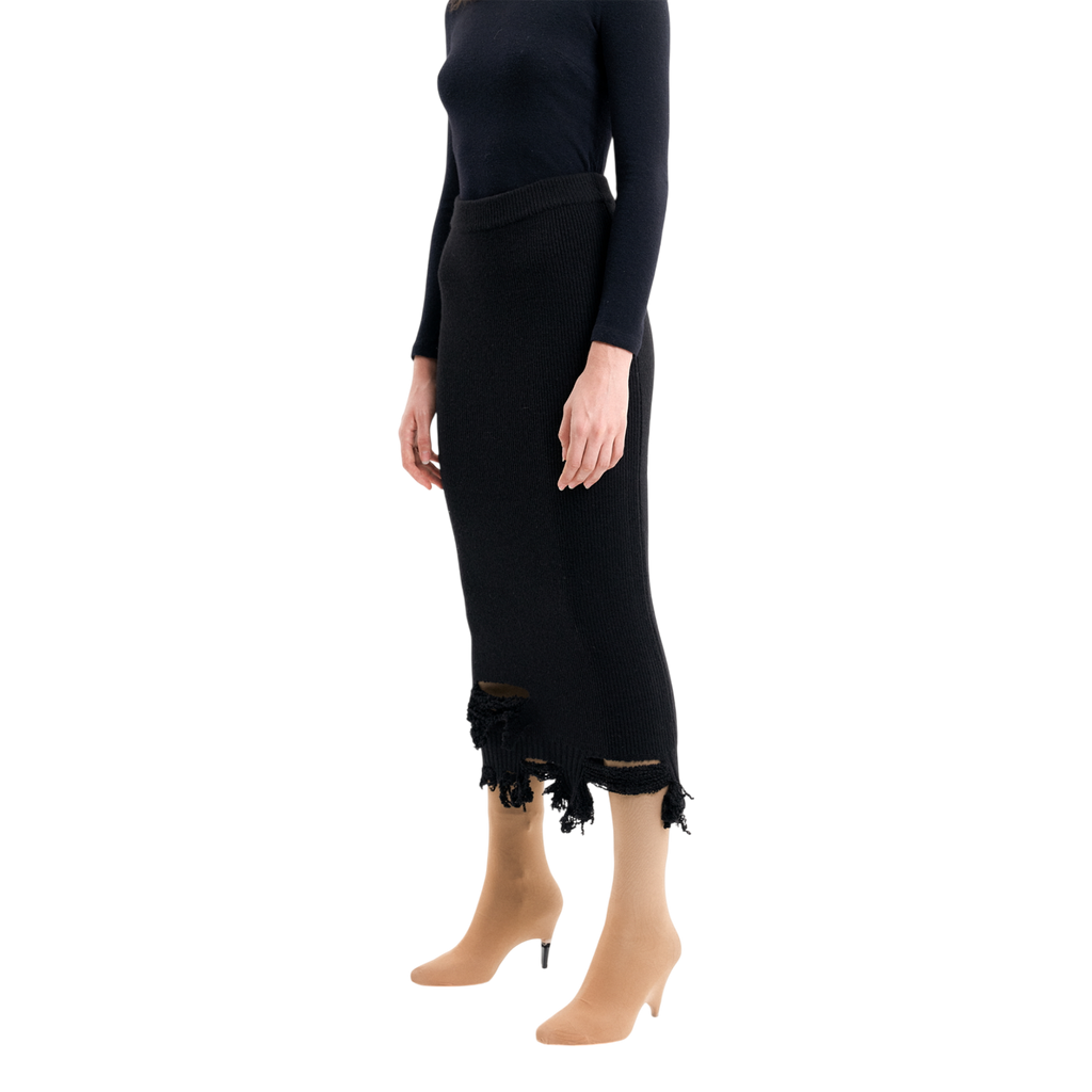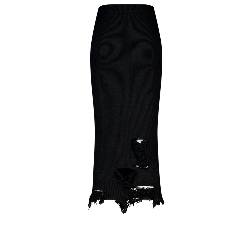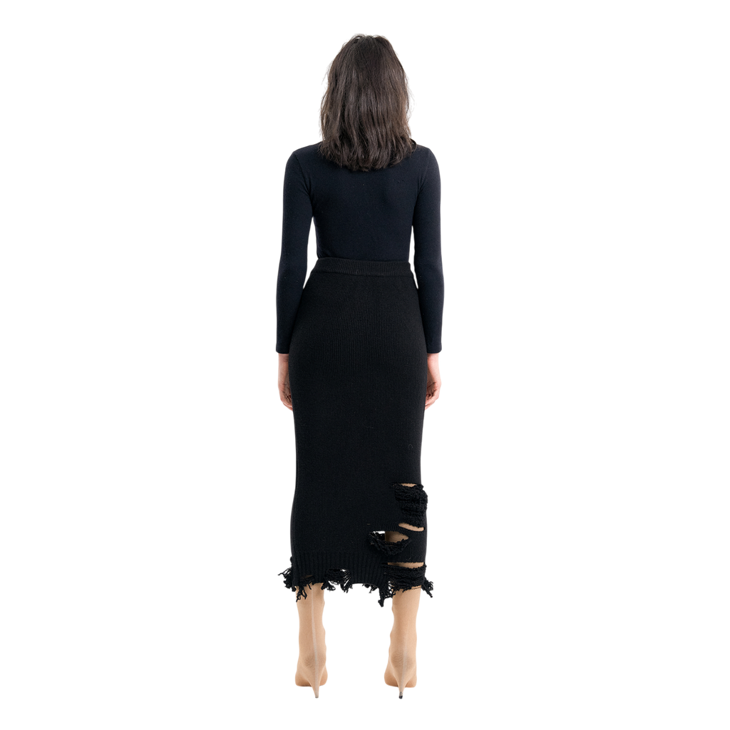 (Emma) Damaged Knit Skirt in Black