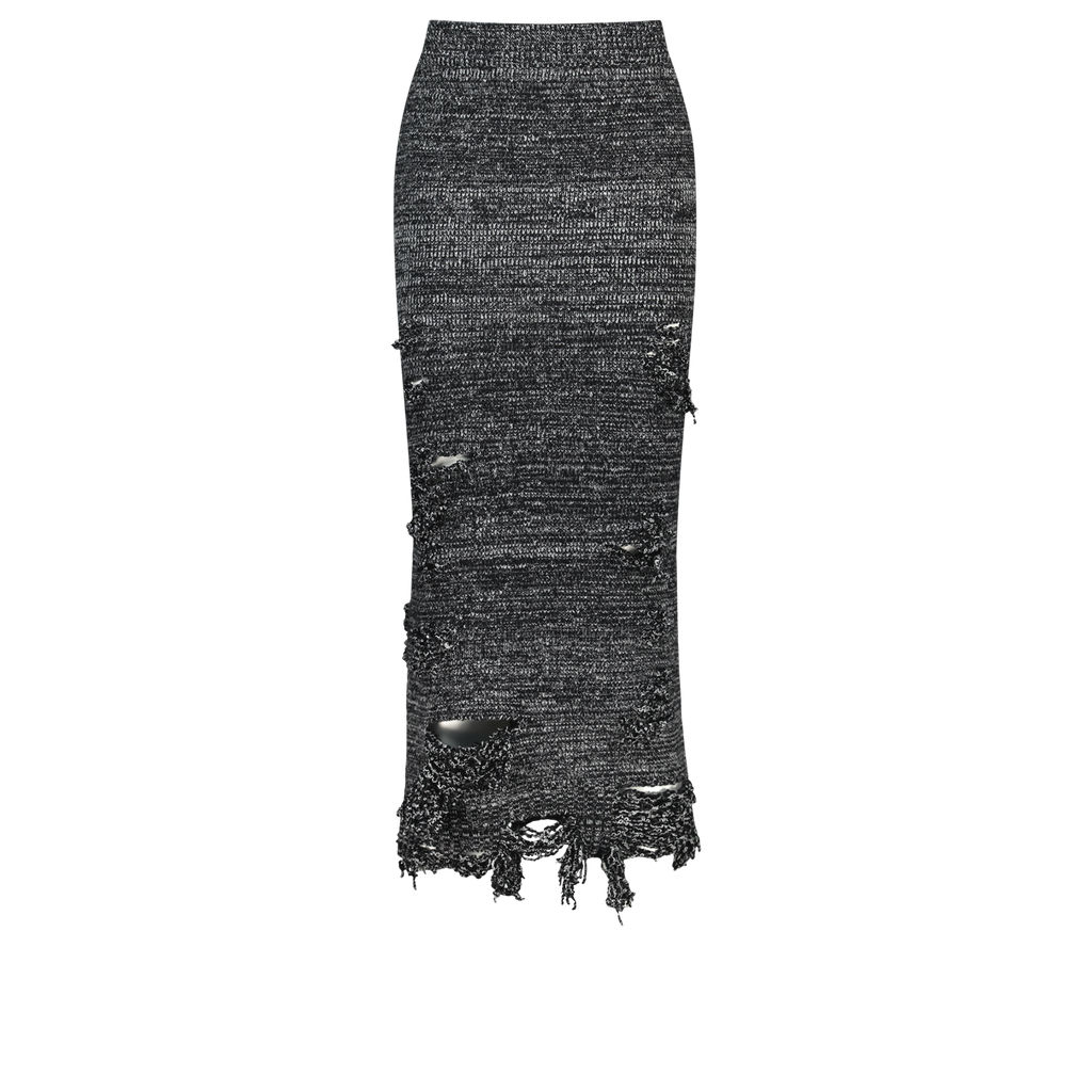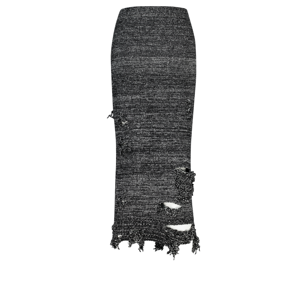 (Emma) Strange Hard Damaged Knit Skirt in Melange Grey