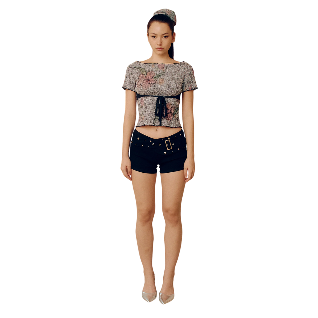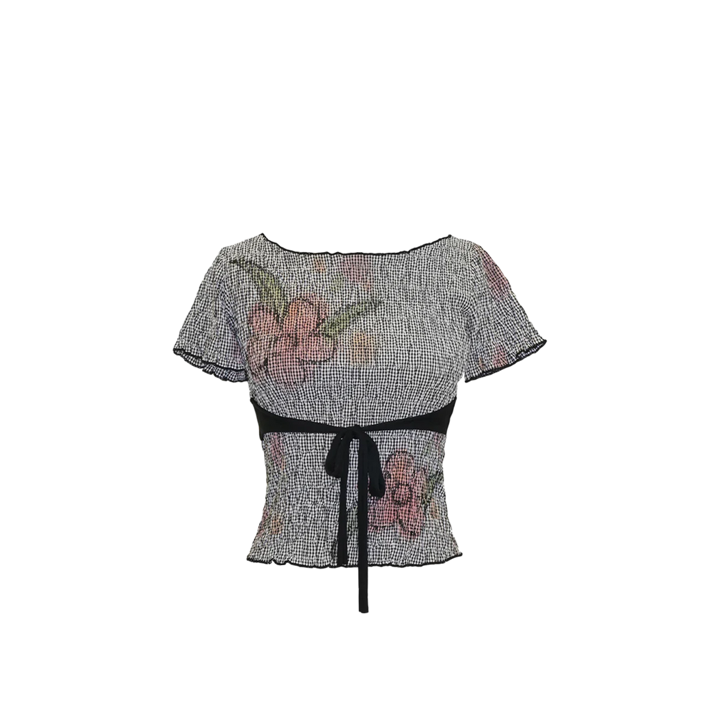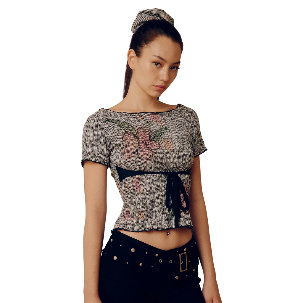 Elevate your wardrobe with this sophisticated Flower Tie Gingham Top. Featuring a delicate floral tie at the neck, this exquisite top adds a touch of elegance to any ensemble. The classic gingham pattern adds a timeless and stylish touch, making this top perfect for any occasion.