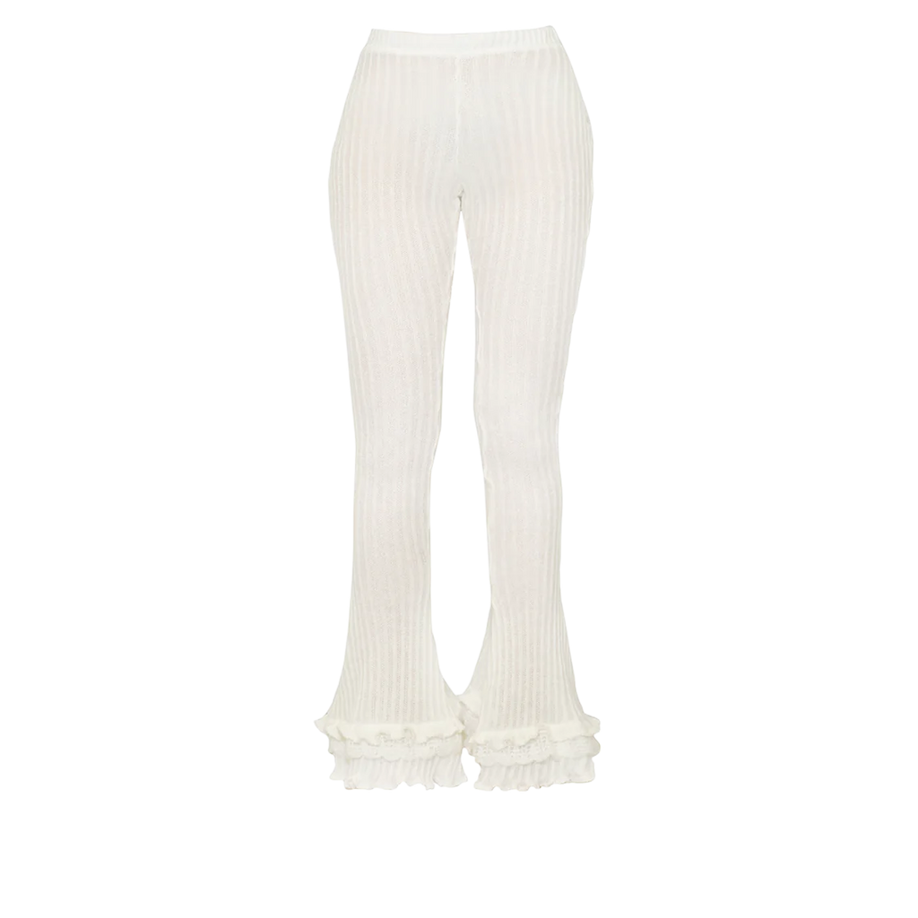 Indulge in luxurious comfort with our Forgive Knit Frill Pants. The soft knit fabric and elegant ruffle detailing create a sophisticated, yet comfortable look. Transform your daily wardrobe into a work of art. Forgive yourself for not owning these sooner