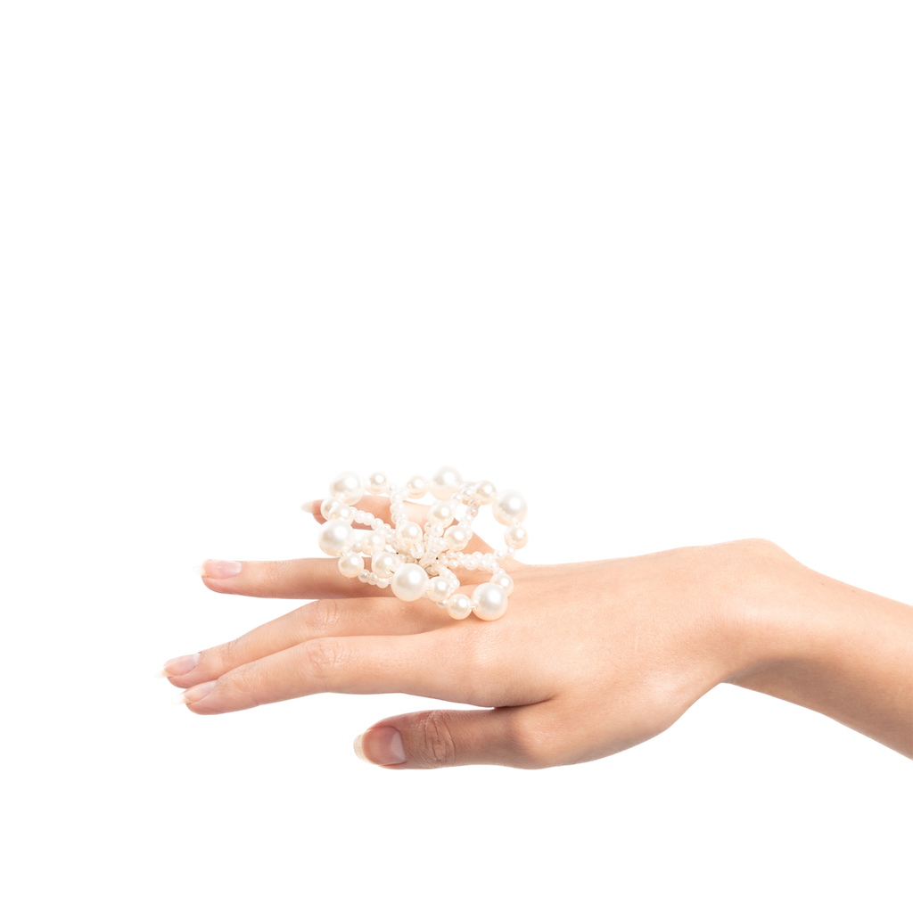 Large and small ABS spheres with an adjustable design, set on a silver-coated brass ring. Finished with the engraved "CONCEPT" logo on the back. Made in Spain.