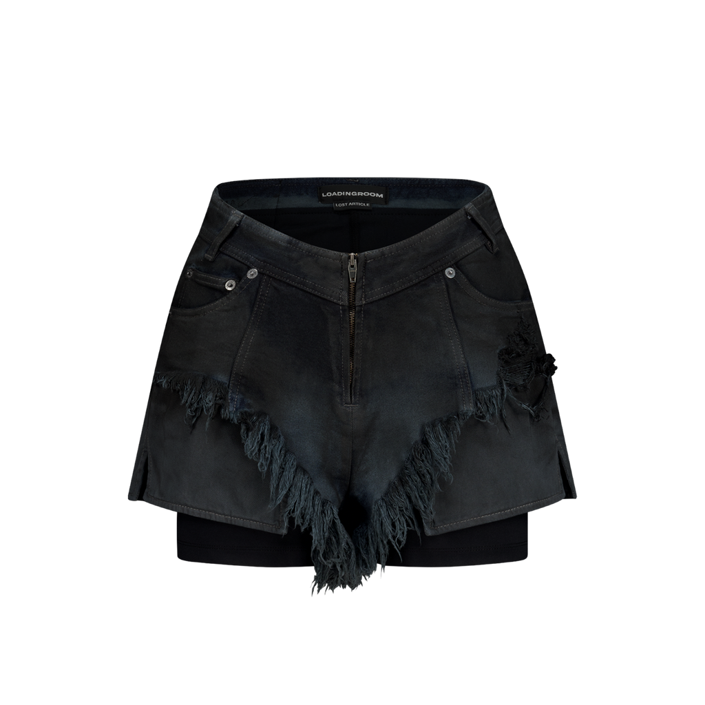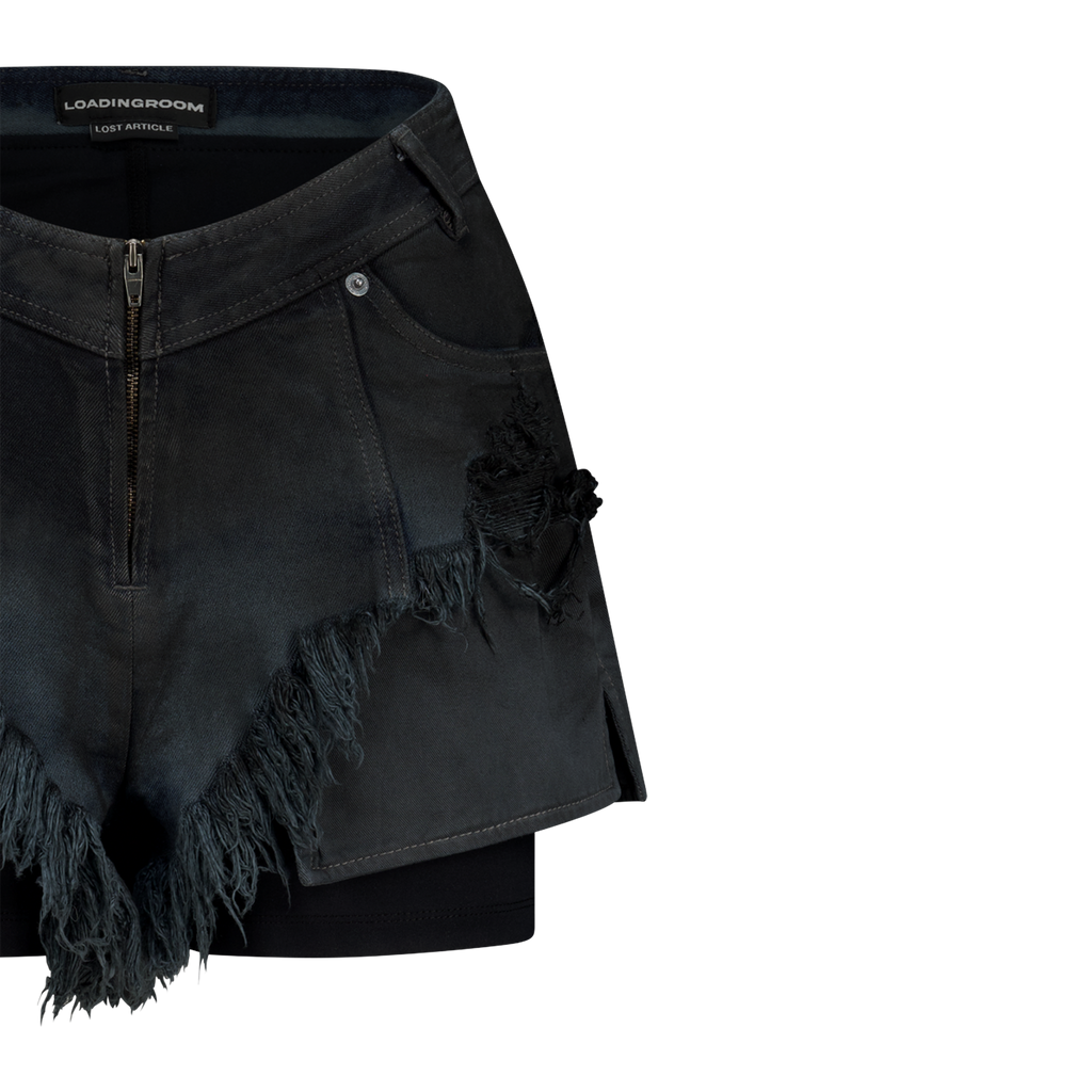 Moto Cut Denim Shorts in Grey Blue