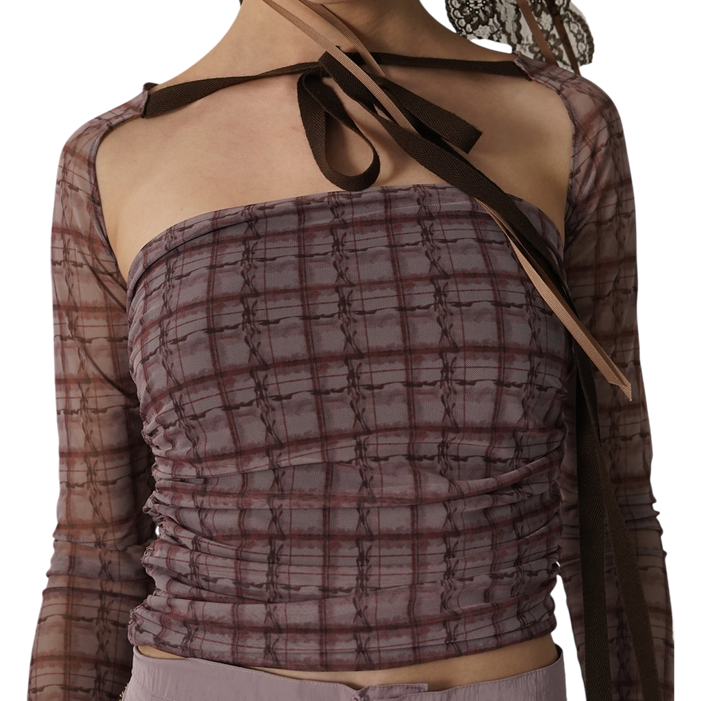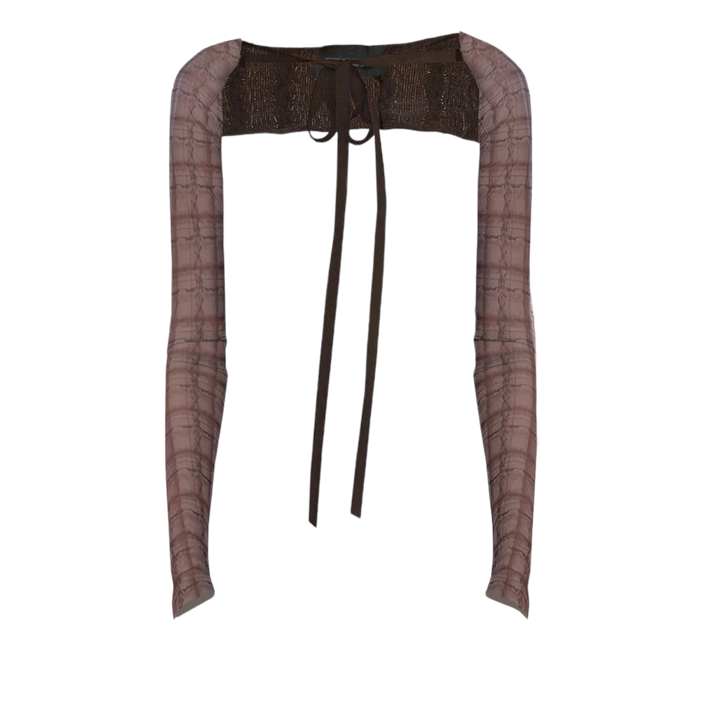 Introducing our Pink Brownie Checkered Shrug, a stylish and versatile addition to your wardrobe. This shrug features a classic checkered pattern in a charming pink brown color, making it a perfect statement piece for any outfit. The mesh sleeves add a touch of elegance, while the knit back provides comfort and flexibility.