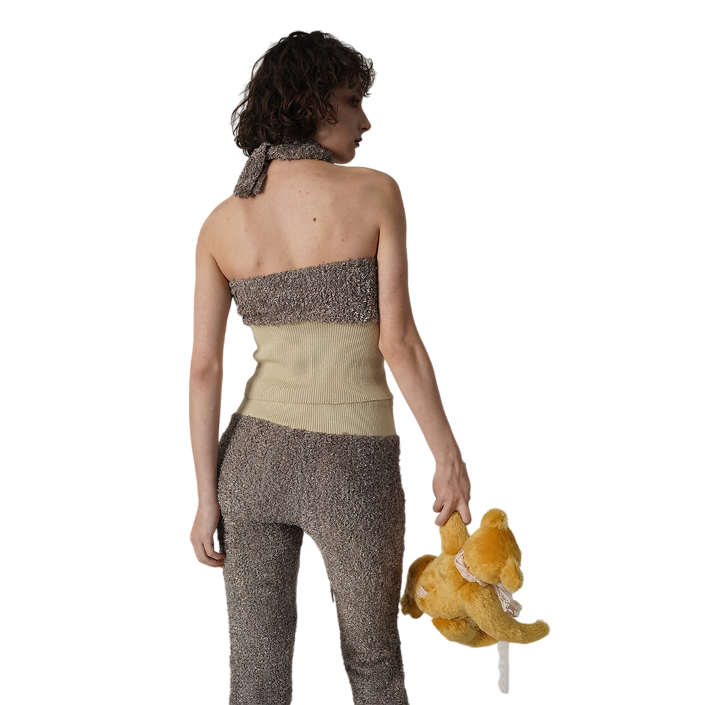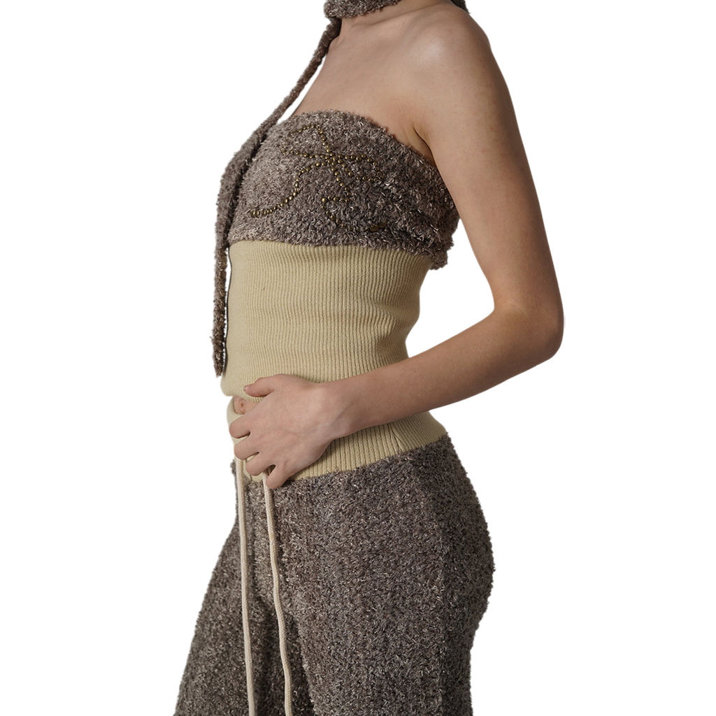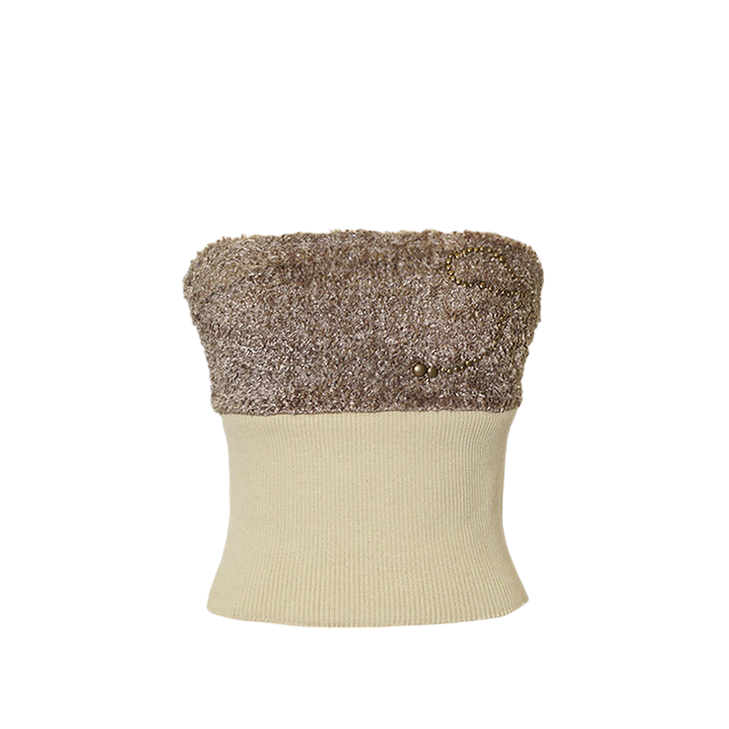 Get ready to turn heads in this stunning Ribbon Stud Fuzzy Tube Top in Olive. This top features a luxe fuzzy knit tube top on the bust, giving it a soft and cozy feel. The front is adorned with bronze studded ribbon detailing for a touch of edgy elegance. The ribbed waist ensures a comfortable and flattering fit.