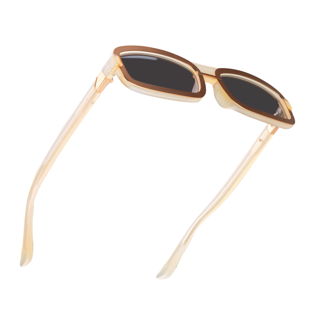 Rectangular stainless steel sunglasses rose gold. Double bridge. Grey lenses with 100% UV protection. Part of the Y/Project x Linda Farrow collaboration.