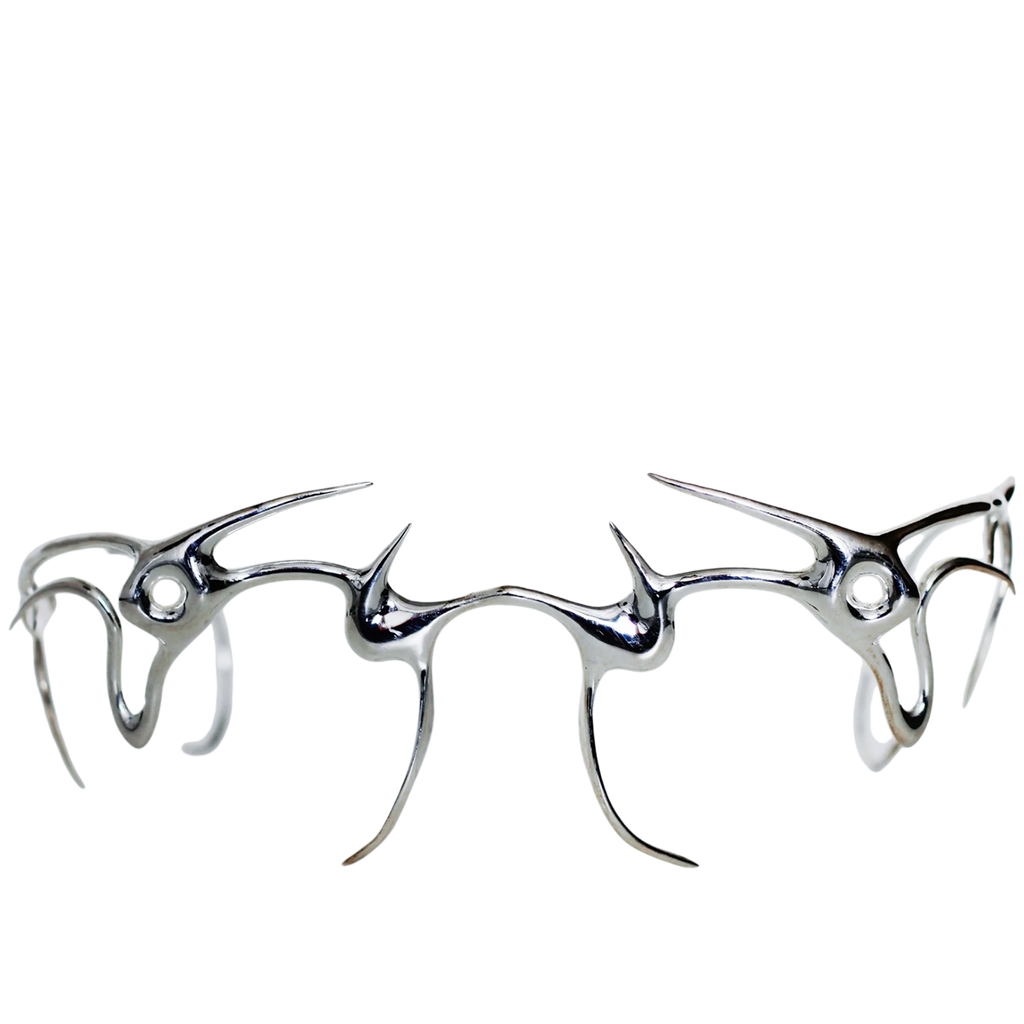 KONSENSUSS, founded in 2022 by Abbir Malik and Winnie Hao, emerged from a shared passion for accessories and adornment. Though they never met at Parsons School of Design, fate connected them in a 9-to-5 fashion job. Bonding over their love for fantasy in movies, video games, and avatars, they pursued jewelry-making after hours, sparking the creation of KONSENSUSS. Combining 3D modeling, printing, analog sculpting, and various materials, the duo crafts bold, avant-garde pieces that challenge conventional design.