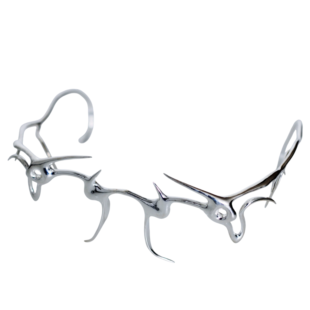 This innovative piece combines modern technology with timeless craftsmanship. Made from BIO ABS through 3D printing and finished with a striking silver electroplating, this design offers a futuristic aesthetic with a luxurious touch.