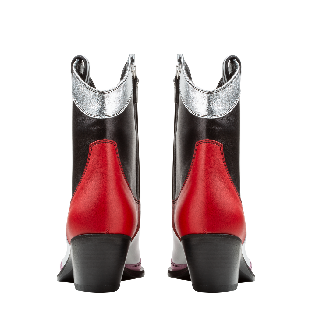 Tronchetto Donna Texan Ankle Boots — Black/Red/Pink