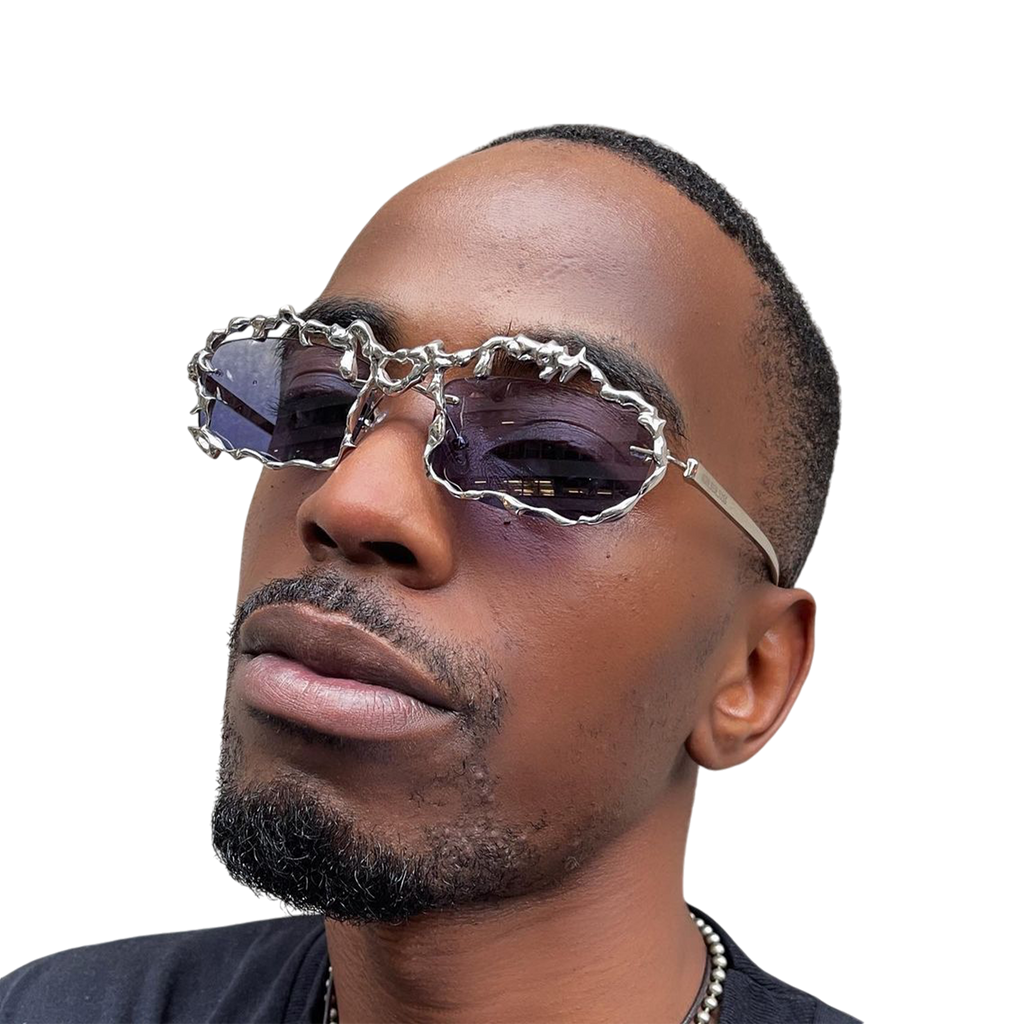 Experience the avant-garde with the Kon.sen.sus melting glasses, expertly manufactured in palladium. These unique sunglasses feature an option to choose from three different colored lenses, allowing you to customize your look while enjoying premium quality and style.