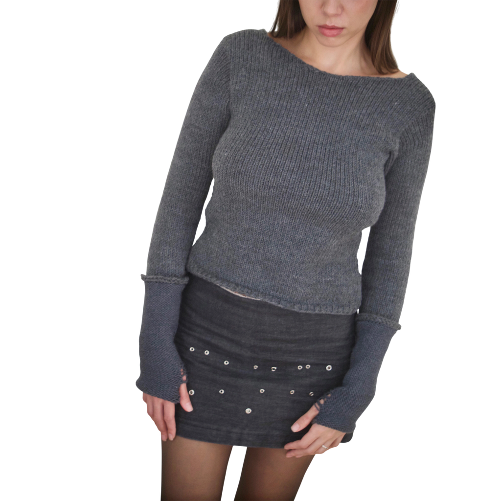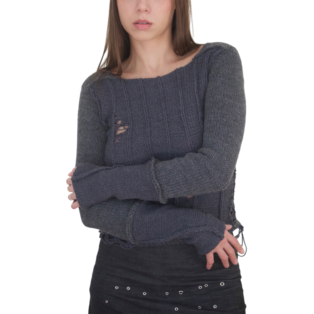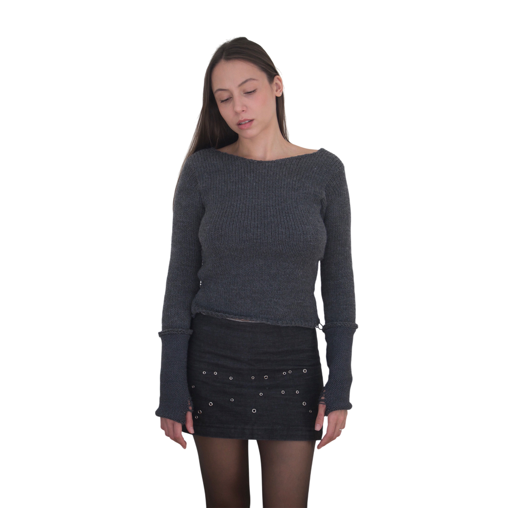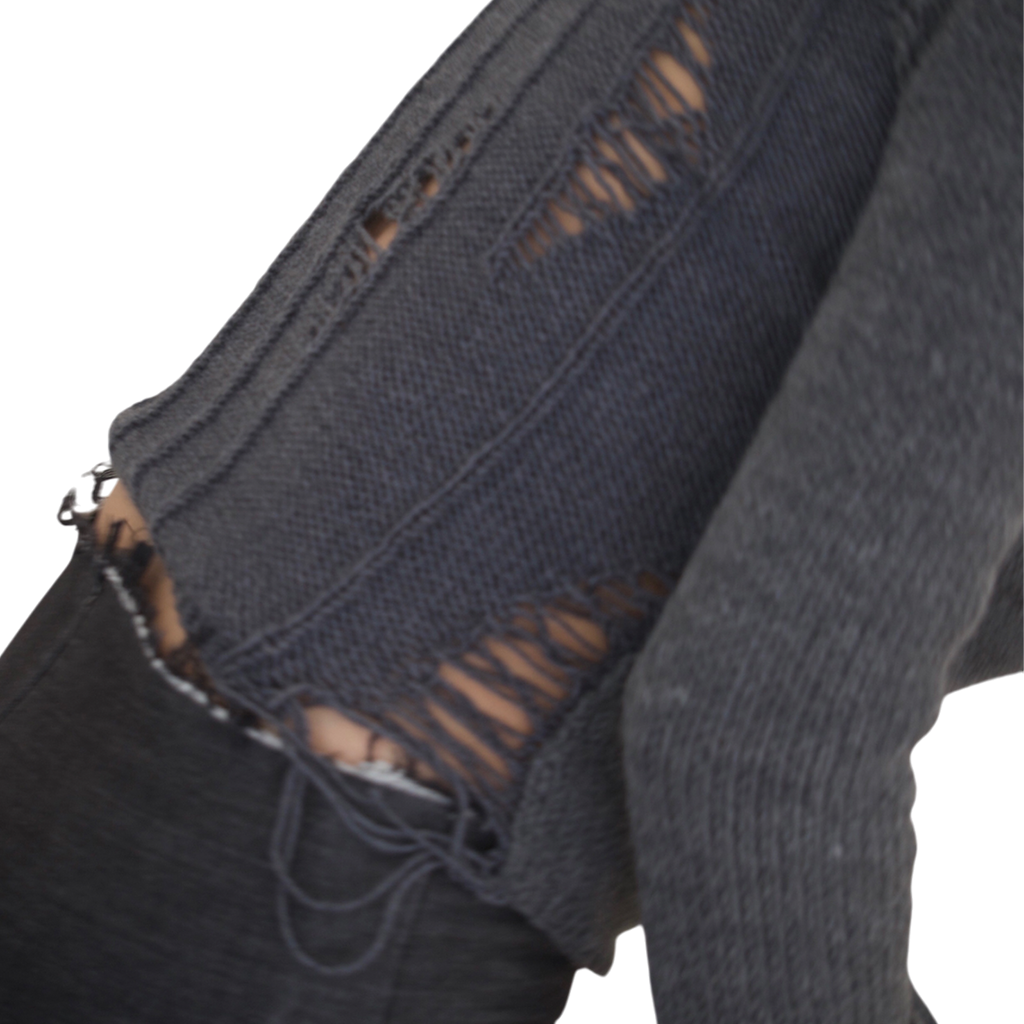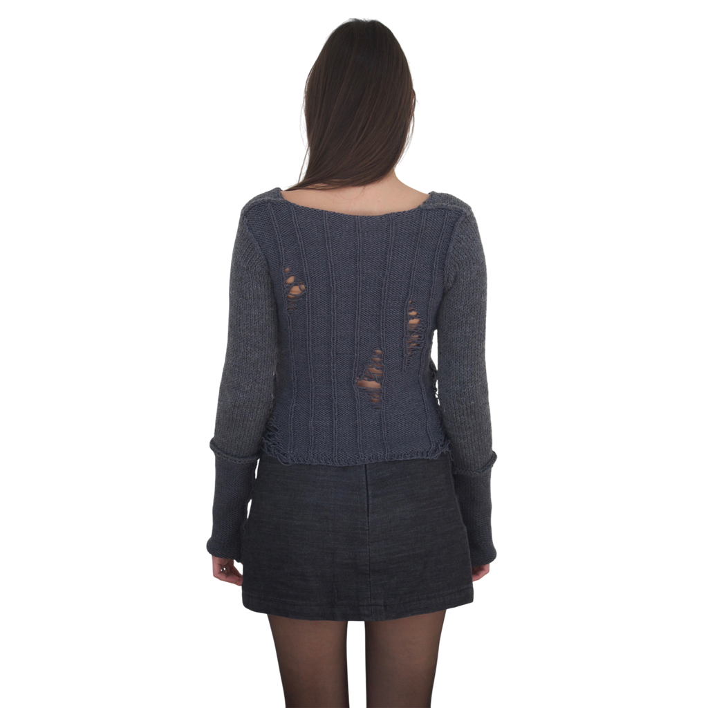 This warm and cozy knit sweater comes in two shades of gray, offering a versatile design with reversible sides for different looks based on your mood. We combine hand-knitting and machine knitting techniques to craft a natural and unique design, made by skilled artisans. The back features a special manually-created pattern with holes for added texture.