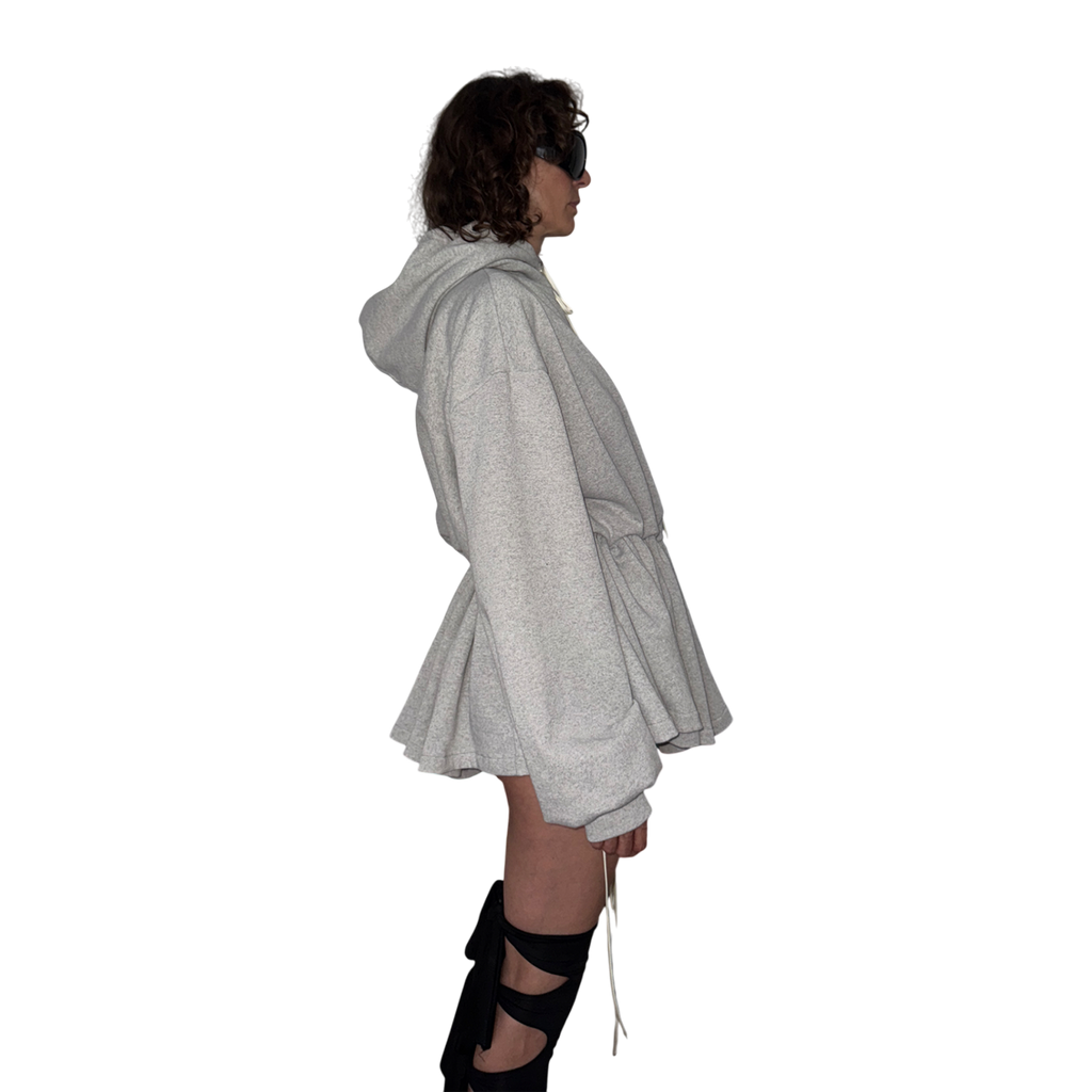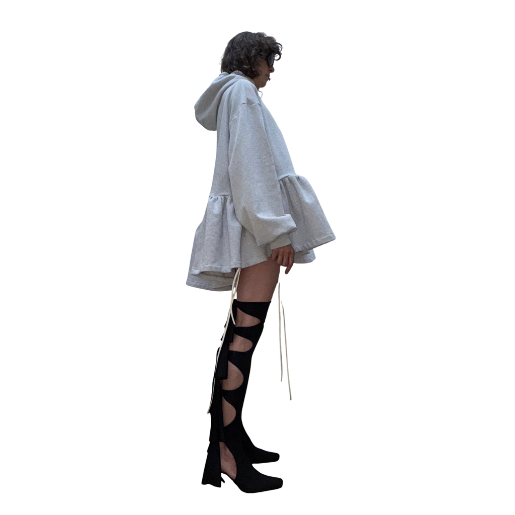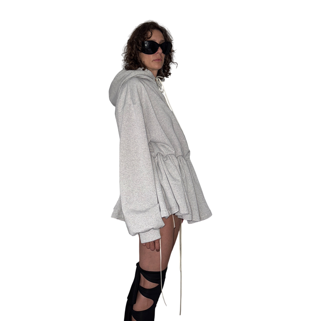 Made with fleece fabric from deadstocks 100% cotton aprox 350 gsm with brushed inside. Regulable with inside cords.